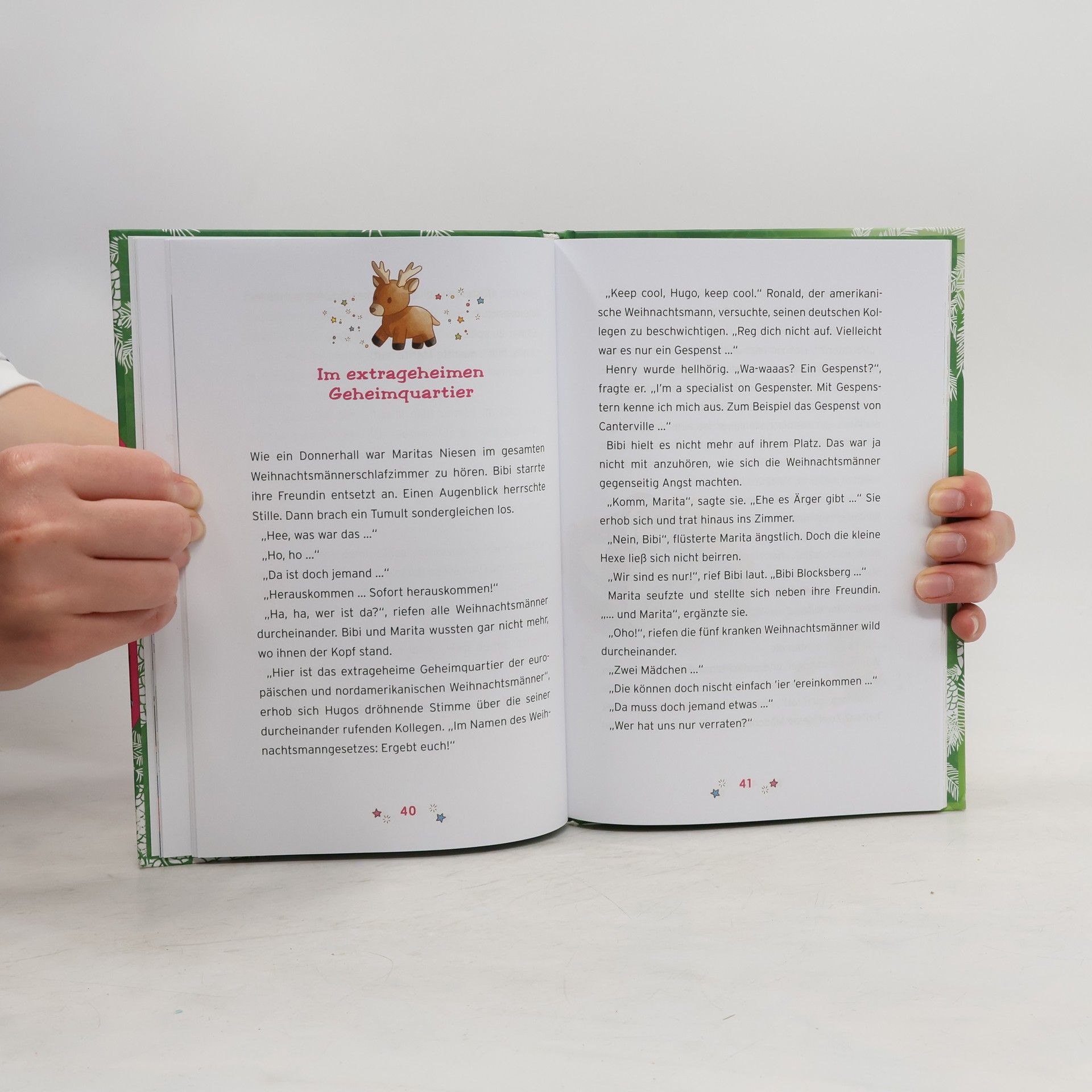 Weihnachten mit Bibi Blocksberg An Heiligabend entdecken Bibi und Marita beim Stöbern in Barbara Blocksbergs Hexenlabor die neue Kristallkugel von Bibis Mutter. Bibi ist neugierig und probiert sie gleich aus. Nach ein paar Versuchen kommt sie auf die Idee, ins Haus des Weihnachtsmanns zu schauen. Was sie dort sehen, können sie kaum glauben, vor allem Marita, die doch eigentlich gar nicht an den Weihnachtsmann glaubt. Aber da sind gleich drei Weihnachtsmänner: Willi, Henry und Pierre. Nur leider sind die drei offenbar schrecklich erkältet und müssen ständig niesen. Das Spielzeug liegt halb fertig in der Werkstatt. Weihnachten muss gerettet werden, beschließt Bibi und fliegt mit Marita zum Haus der Weihnachtsmänner. Aber einer ihrer Hexsprüche geht schief. Das Spielzeug setzt sich falsch zusammen und die Medizin erweist sich als Lachelixier. Nun kann nur noch Mutter Barbara Blocksberg helfen. Durchgehend vierfarbig illustriert für einen einfachen Leseeinstieg