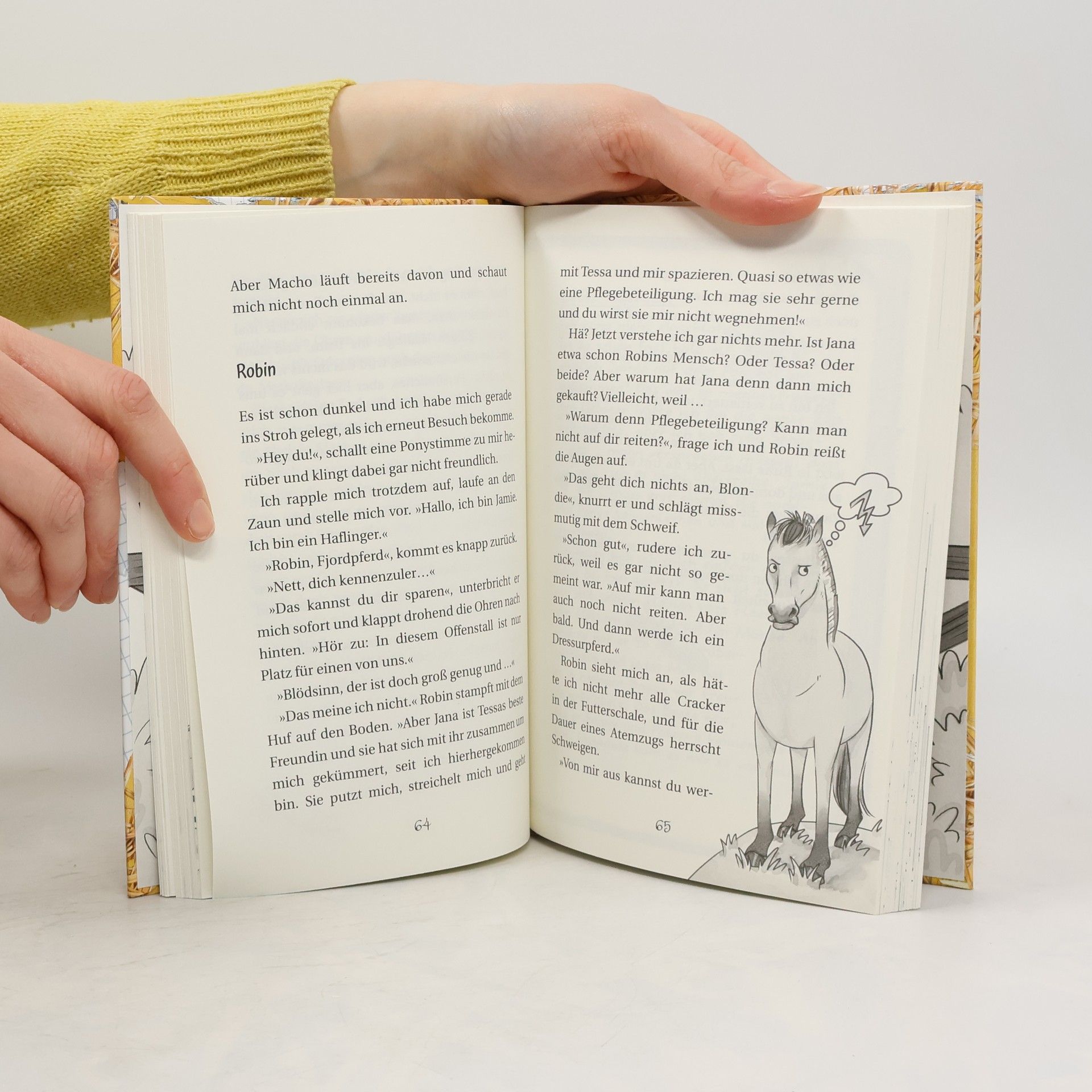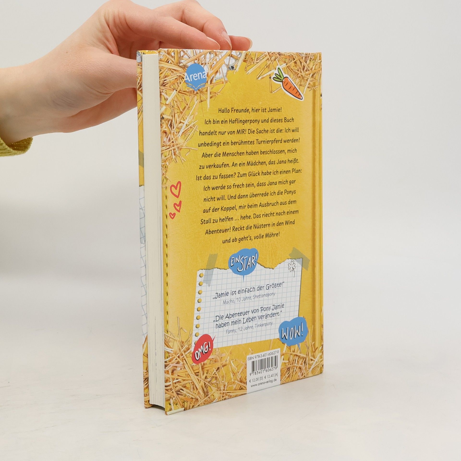 Hier kommt Pony Jamie - Held, Menschenflüsterer und der König der Pferdekoppel! Hallo Möhrenfreunde! Mein Name ist Jamie und ich bin ein berühmtes Dressurpferd. Also, zumindest bald, wenn die Menschen endlich erkennen, welches Talent in mir schlummert. In der Zwischenzeit muss ich noch das kleine Missverständnis klären, dass ich "aussortiert“ wurde, weil ich "zu groß“ sei. Statt in die Sportmannschaft des Gestüts aufgenommen zu werden, soll ich nämlich verkauft werden. Aber nicht mit mir! Auf mich warten große Aufgaben, Leute. Und daran kann mich auch nicht dieses seltsame Mädchen hindern. Jana glaubt nämlich, ein Pferdeflüsterer zu sein. Aber sie weiß ja gar nicht, mit wem sie es zu tun hat. Denn ich - ich bin der größte Menschenflüsterer aller Zeiten!
