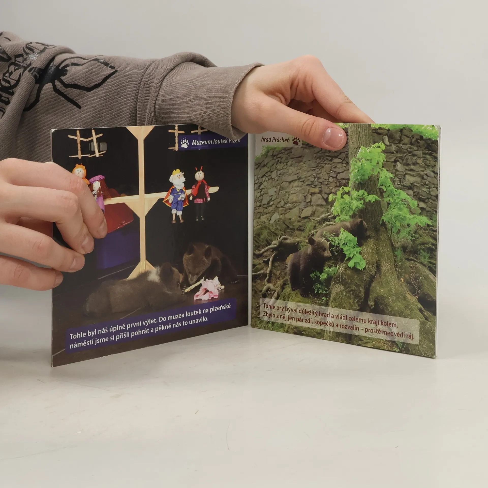 S medvědicí, s medvědem, vždycky k cíli dojedem! Tak si možná veršovali Václav Chaloupek a fotograf Karel Brož, když spolu s medvědy Agátou a Martinem putovali po krásných koutech naší vlasti. No – s medvědy. Zpočátku – na jaře – to byla teprve medvědí batolata, mnoho toho nenaběhala a brzo se unavila. Ale jak putování pokračovalo během roku, rostli méďové jako z vody a v zimě už to byla pořádná medvědiska.