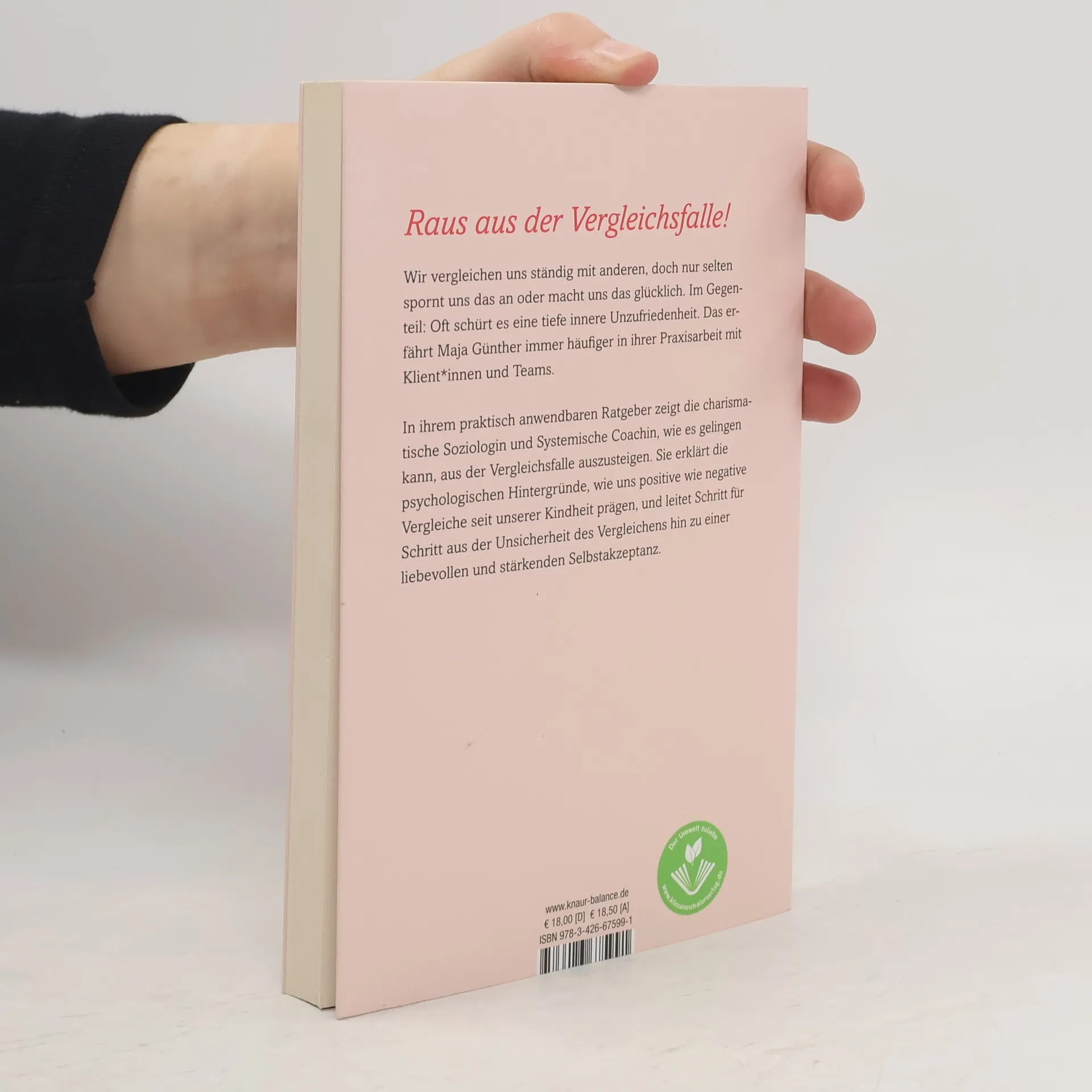 Raus aus der Vergleichsfalle – hin zu einem selbstbestimmten Leben. Das Praxisbuch mit konkreten Hilfestellungen. Wir vergleichen uns ständig: Andere sehen besser aus, machen Dinge besser und geschickter als wir und haben einfach viel mehr vom Leben ... Die charismatische Psychologin (HP) Maja Günther kennt aus ihrer Beratungs-Praxis viele solcher Fälle, und durch die sozialen Medien werden es zunehmend mehr. Deshalb hat sie ein alltagsnahes Coaching zur Selbsthilfe entwickelt, das Menschen hilft, ihren Selbstwert wahrzunehmen und zu sich zu stehen: Schritt für Schritt aus der Unsicherheit des Vergleichens hin zur authentischen Selbstakzeptanz. Maja Günther erklärt die psychologischen Hintergründe, die dem ständigen Vergleichen zugrunde liegen und uns seit unserer Kindheit prägen. Sie sagt: „Vergleichen ist so, wie wenn wir durch ein Schlüsselloch schauen: Wir sehen nicht das ganze Bild, sondern nur einen kleinen Ausschnitt, der nichts über die Realität aussagt.“ In ihrem psychologischen Coaching-Ratgeber begleitet sie uns durch diesen wichtigen Prozess der Persönlichkeitsentwicklung hin zu mehr Selbstwertgefühl. Alles beginnt mit Bewusstwerdung und führt letztlich dazu, sich aus der eigenen Komfortzone zu wagen und dadurch sich selbst und auch andere in ihrer Einzigartigkeit wahrzunehmen. Ganz nach dem Motto: Sei du selbst – alle anderen gibt es schon!