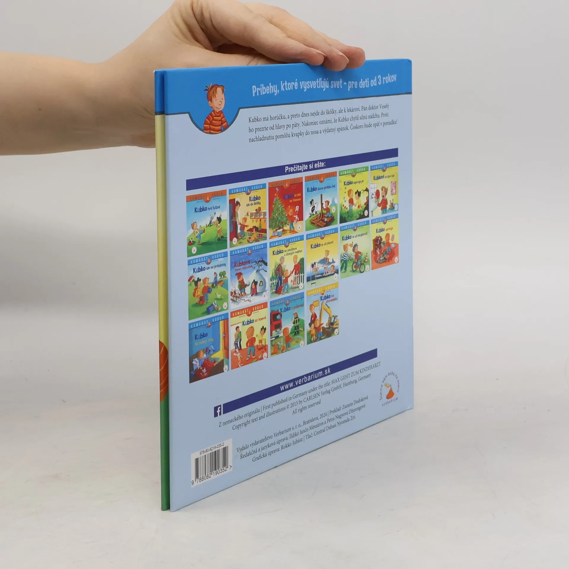 Kubko má horúčku, a preto dnes nejde do škôlky, ale k lekárovi. Pán doktor Vesely´ ho prezrie od hlavy po päty. Nakoniec oznámi, že Kubko chytil silnú nádchu. Proti nachladnutiu pomôžu kvapky do nosa a vy´datny´ spánok. Čoskoro bude opäť v poriadku! Nové vydanie v tvrdej väzbe.