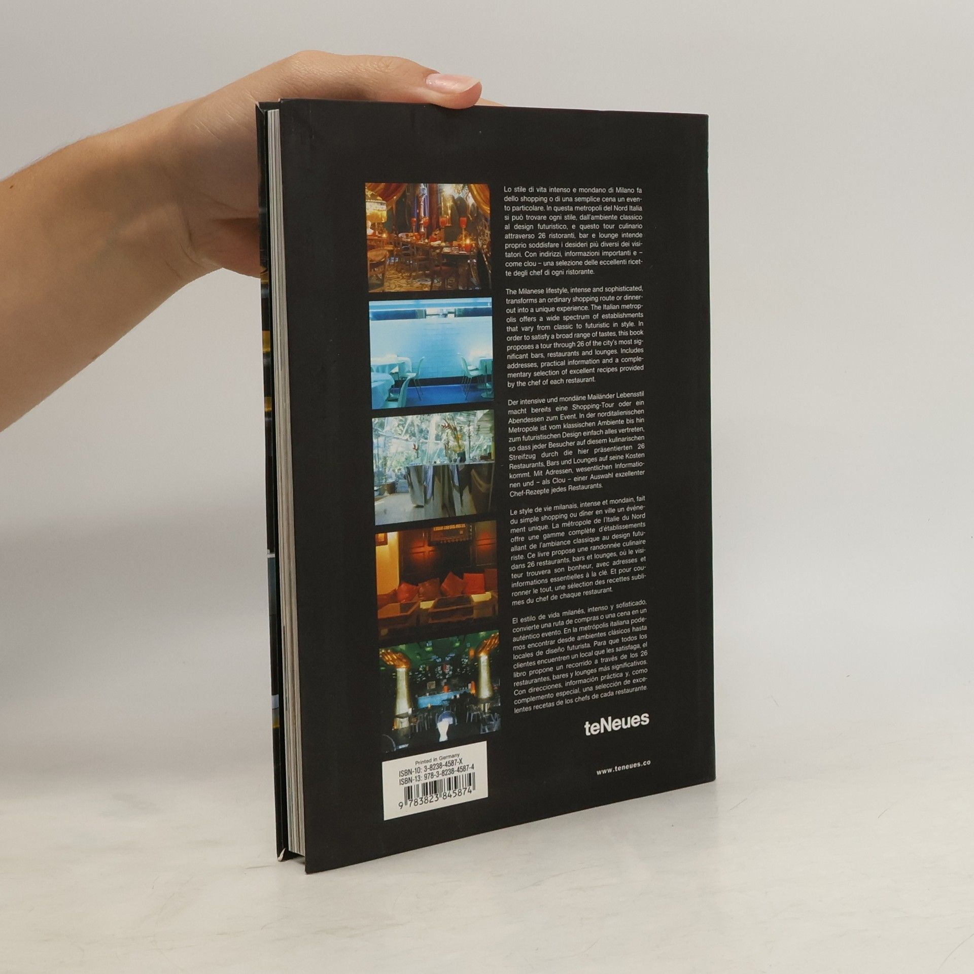 The variety and flux of Milan's restaurant scene matches the eclecticism and dynamism of the city itself. Whether classical in design or furnished in the highest of high-tech style, Milan's restaurants offer the widest range of dining experiences available in a single city, with ambience to suit every taste. Another title in teNeues' recently launched series, this flexi-bound guide to the coolest restaurants in Milan features over a hundred full color photos.