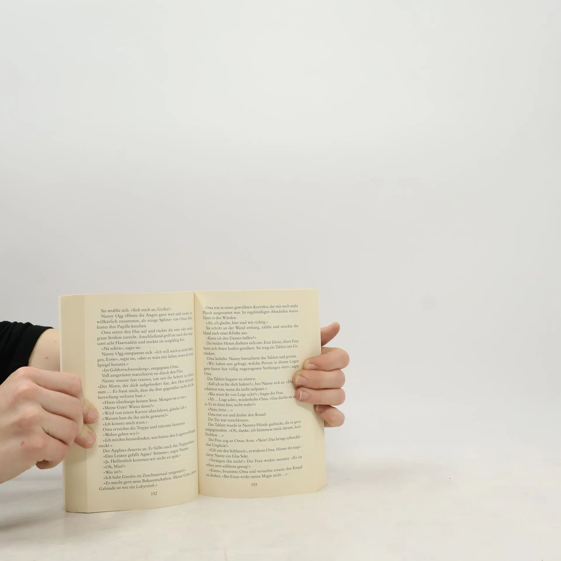 Im Opernhaus von Ankh-Morpork huschen geheimnisvolle Gestalten durch die Kulissen und führen Niederträchtiges im Schilde. Wer den sterbenden Schwan auf der Bühne mimt, der lebt gefährlich. Es spukt, und als auch noch ein Mord geschieht, treten die Scheibenwelt-Hexen Oma Wetterwachs und Nanny Ogg auf den Plan...