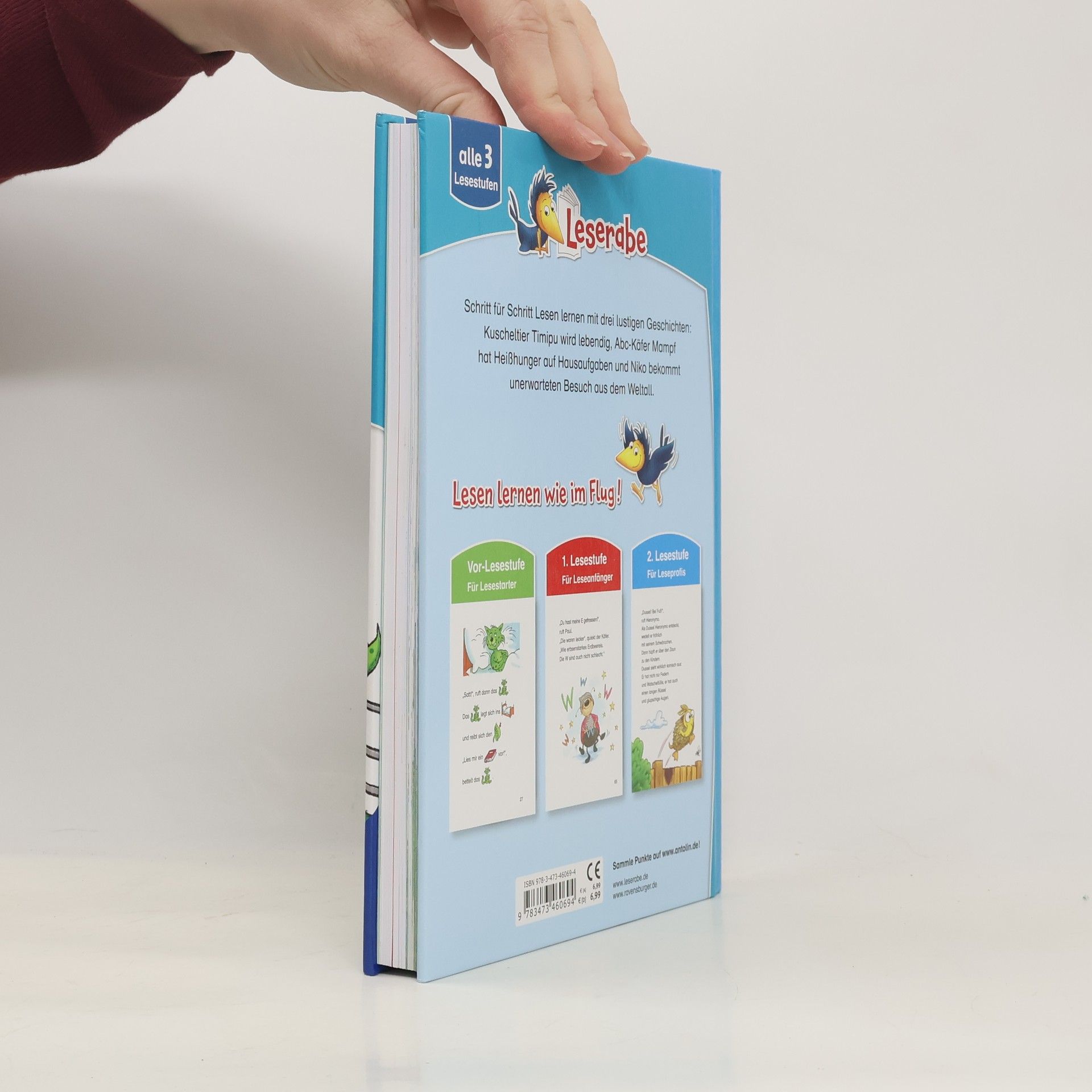 3 lustige Geschichten in einem Band: Kuscheltier Timipu wird lebendig, Abc-Käfer Mampf hat Heißhunger auf Hausaufgaben und Niko bekommt unerwartet Besuch aus dem Weltall. Lesen lernen wie im Flug! Die Kinderbücher der Reihe Leserabe wurden mit Pädagogen entwickelt und richten sich an Leseanfänger ab dem Vorschulalter. Das große Leserabe-Leselernbuch enthält 3 Texte für Erstleser mit unterschiedlichem Schwierigkeitsgrad. Die Vor-Lesestufe ermöglicht, Kindern im Vorschulalter und deren Eltern als Leseteam erste gemeinsame Leseerlebnisse. Die kurzen Texte der 1. Lesestufe sind in großer Fibelschrift geschrieben, sichern erste Leseerfolge und steigern die Lesekompetenz. Spannende Geschichten in Fibelschrift wecken in der 2. Lesestufe die Lesemotivation. So werden Leseanfänger Schritt für Schritt zum Leseprofi! Empfohlen von Stiftung Lesen. Weitere Informationen auf leserabe.de.