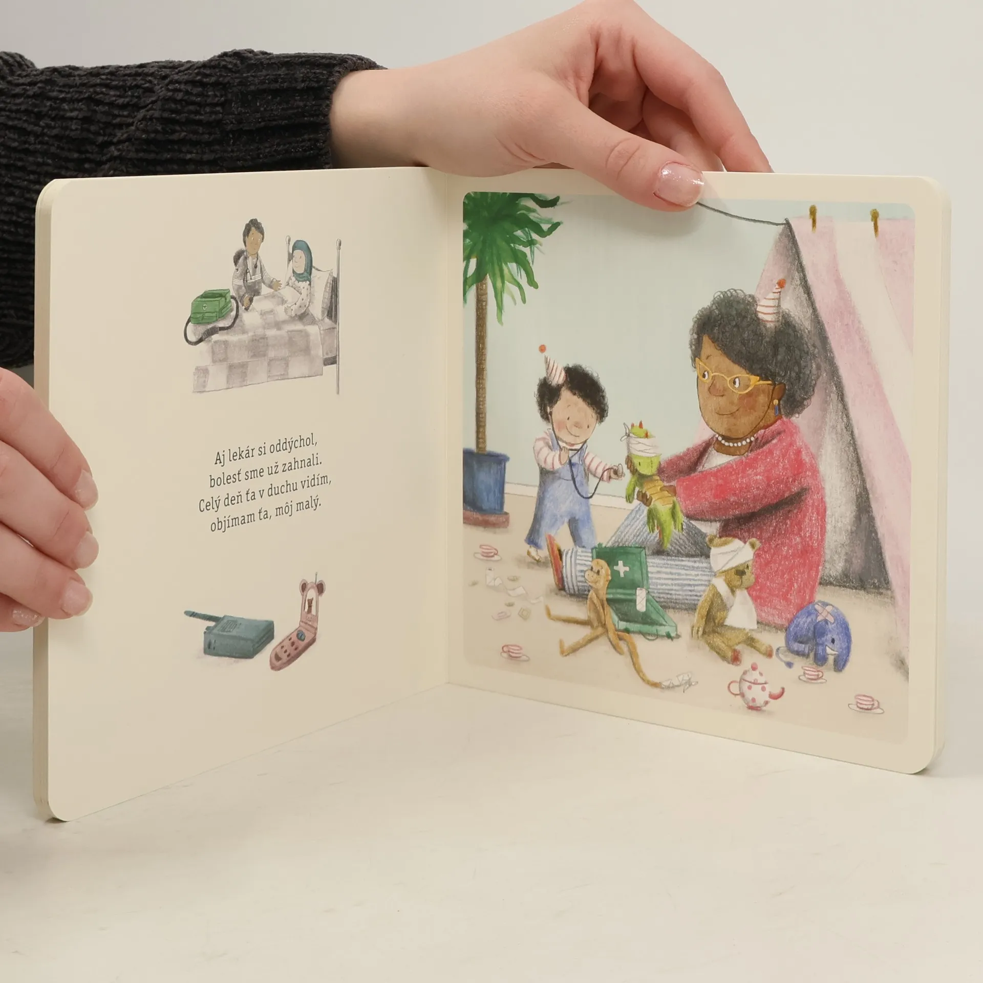 Čo robí mamička v práci, kým sa hrám so starými rodičmi? Hravé rýmy a milé ilustrácie zobrazujú paralely medzi pracovným dňom mamičky a dňom synčeka so starými rodičmi. Zrozumiteľne vysvetľujú, čo sa deje v živote rodiča, keď chodí do práce, a že na svoje dieťa nezabúda pri žiadnej činnosti. Z anglického originálu preložila Marta Hlušíková. Pre deti od 1 roka.