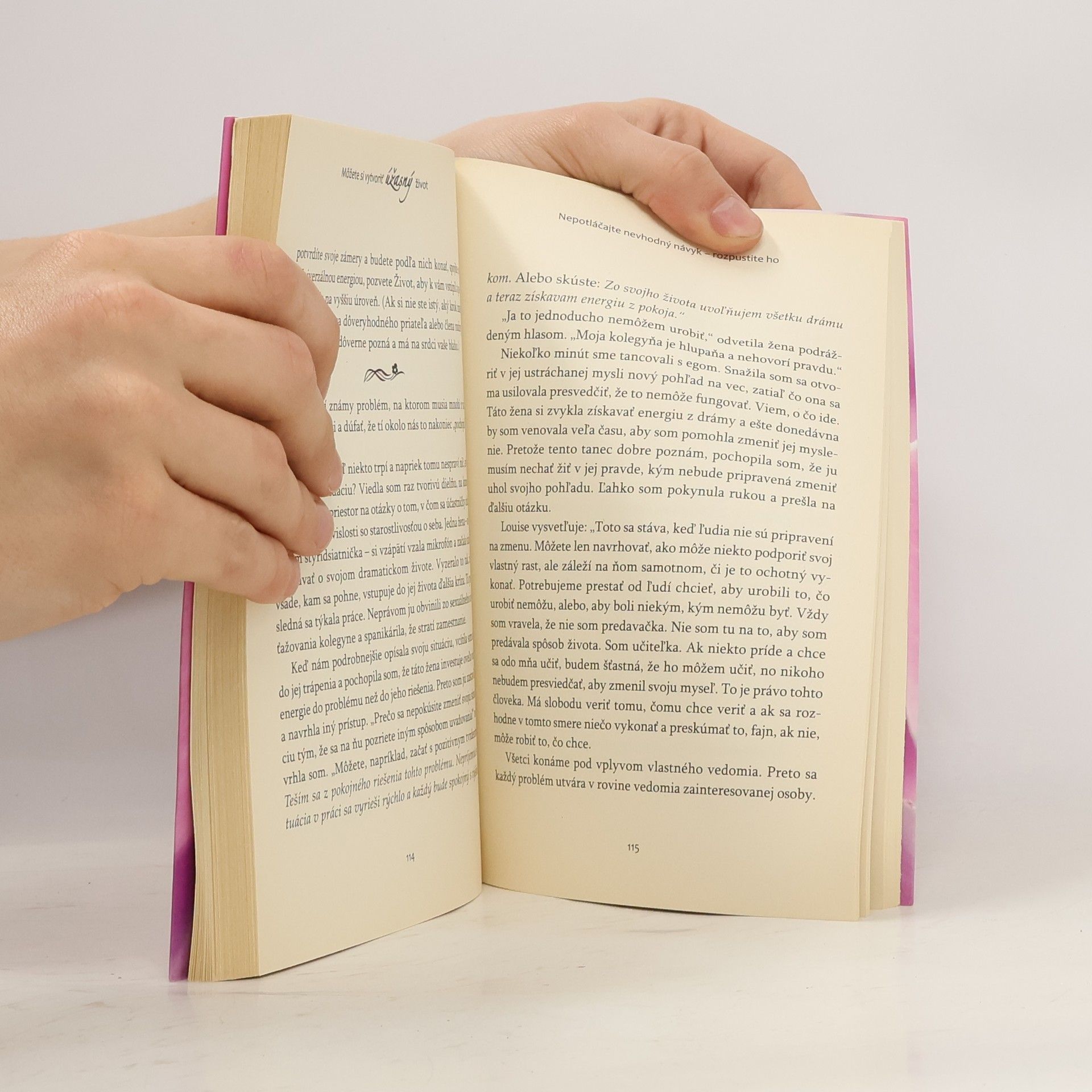 „Obe, Cheryl i ja, sme cielene uskutočnili pozitívne zmeny v našich životoch a rady by sme sa s tým podelili s vami. Každý môže zlepšiť kvalitu svojho života. Keď sa opatrujeme a našu myseľ vedieme k tomu, aby sme sa cítili dobre, ak to naozaj ropbíme, priťahujeme nádherné zážitky. Myšlienka, že máme predstaviť tieto metódy prístupným spôsobom, ktorý umožní, krok za krokom, naučiť sa dosiahnuť pokojnú myseľ a žiť slobodne bez obáv a v zdravom tele, s dostatočným príjmom a v dobrých vzťahoch. Napokon sme vám chceli ukázať ako opustiť rolu obete, aby ste sa stali tvorcom radostného života. Keď budete čítať túto knihu kapitolu za kapitolou, zbadáte, ako sa vaše plecia zbavujú záťaže. Vaše obočie bude hladšie a napätie i obavy sa rozplynú a vy si uvedomíte, že jestvuje lepší spôsob života.Ide o cestu, ktorá prináša potešenie, no nejde o preteky a dosiahnutie cieľa. Máme vás rady a podporujeme vás na našej spoločnej veľkolepej dobrodružnej ceste k úžasnému životu.“