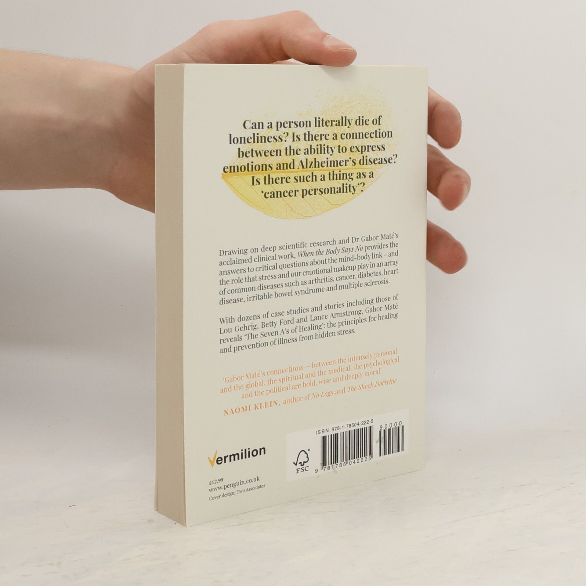 Can a person literally die of loneliness? Is there a connection between the ability to express emotions and Alzheimer?s disease? Is there such a thing as a 'cancer personality??Drawing on deep scientific research and Dr Gabor Mate?s acclaimed clinical work, When the Body Says Noprovides the answers to critical questions about the mind-body link - and the role that stress and our emotional makeup play in an array of common diseases.When the Body Says No-- Explores the role of the mind-body link in conditions and diseases such as arthritis, cancer, diabetes, heart disease, irritable bowel syndrome and multiple sclerosis. - Shares dozens of enlightening case studies and stories, including those of people such as Lou Gehrig (ALS), Betty Ford (breast cancer), Ronald Reagan (Alzheimer?s), Gilda Radner (ovarian cancer) and Lance Armstrong (testicular cancer)- Reveals 'The Seven A?s of Healing?- principles in healing and the prevention of illness from hidden stress