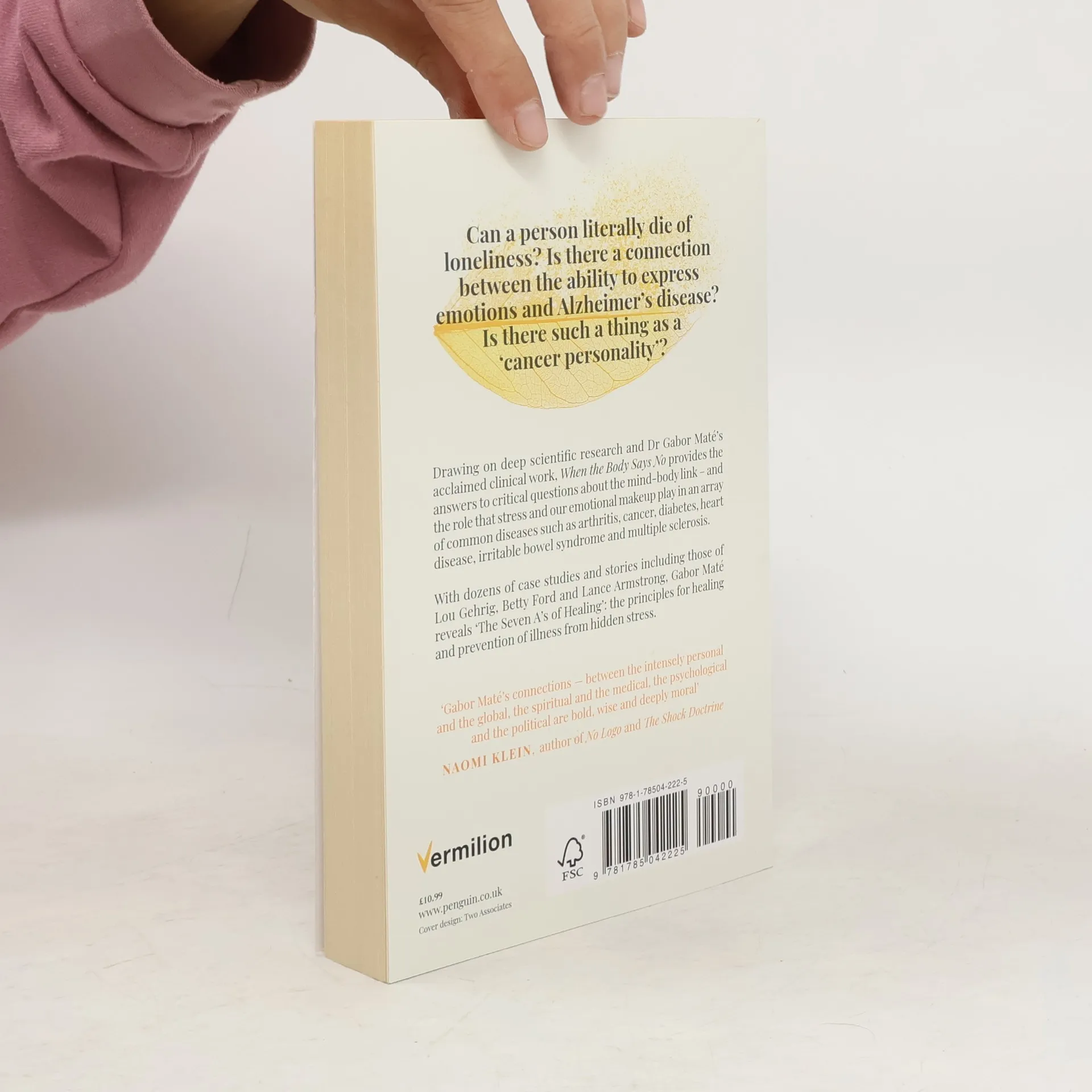 Can a person literally die of loneliness? Is there a connection between the ability to express emotions and Alzheimer?s disease? Is there such a thing as a 'cancer personality??Drawing on deep scientific research and Dr Gabor Mate?s acclaimed clinical work, When the Body Says Noprovides the answers to critical questions about the mind-body link - and the role that stress and our emotional makeup play in an array of common diseases.When the Body Says No-- Explores the role of the mind-body link in conditions and diseases such as arthritis, cancer, diabetes, heart disease, irritable bowel syndrome and multiple sclerosis. - Shares dozens of enlightening case studies and stories, including those of people such as Lou Gehrig (ALS), Betty Ford (breast cancer), Ronald Reagan (Alzheimer?s), Gilda Radner (ovarian cancer) and Lance Armstrong (testicular cancer)- Reveals 'The Seven A?s of Healing?- principles in healing and the prevention of illness from hidden stress