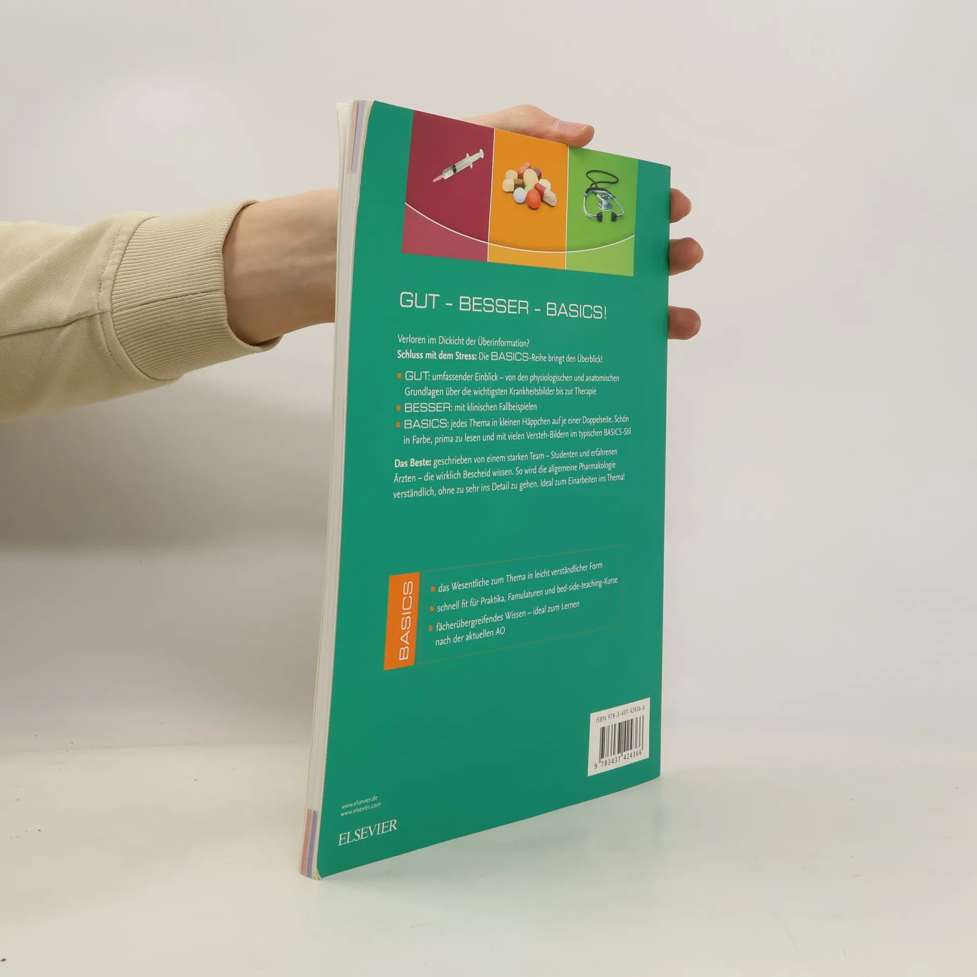 Hier ist alles drin und anschaulich von den Grundlagen der Pharmakologie und Physiologie über die verschiedenen Einsatzbereiche der Pharmaka bis hin zu Einfluss und Wirkung in allen Körperregionen . Das geschrieben von einem starken Team – Studenten und erfahrenen Ärzten –, die wirklich Bescheid wissen. So wird Allgemeine Pharmakologie verständlich, ohne zu sehr ins Detail zu gehen. Ideal zum Einarbeiten ins Thema! Die BASICS-Reihe bietet