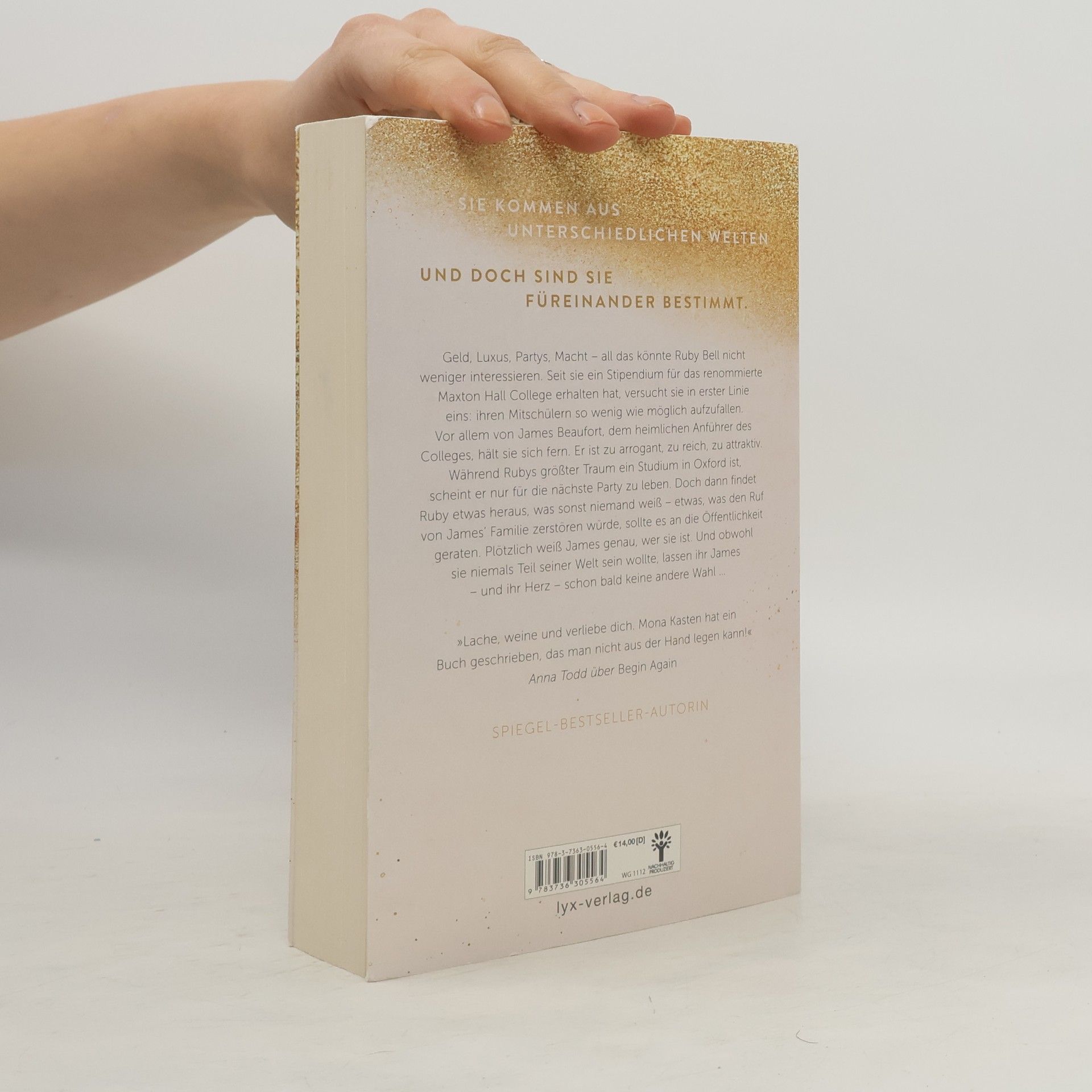 Sie kommen aus unterschiedlichen Welten. Und doch sind sie füreinander bestimmt. Geld, Glamour, Luxus, Macht - all das könnte Ruby Bell nicht weniger interessieren. Seit sie ein Stipendium für das renommierte Maxton Hall College erhalten hat, versucht sie in erster Linie eins: ihren Mitschülern so wenig wie möglich aufzufallen. Vor allem von James Beaufort, dem heimlichen Anführer des Colleges, hält sie sich fern. Er ist zu arrogant, zu reich, zu attraktiv. Während Rubys größter Traum ein Studium in Oxford ist, scheint er nur für die nächste Party zu leben. Doch dann findet Ruby etwas heraus, was sonst niemand weiß - etwas, was den Ruf von James‘ Familie zerstören würde, sollte es an die Öffentlichkeit geraten. Plötzlich weiß James genau, wer sie ist. Und obwohl sie niemals Teil seiner Welt sein wollte, lassen ihr James - und ihr Herz - schon bald keine andere Wahl ... „Lache, weine und verliebe dich. Mona Kasten hat ein Buch geschrieben, das man nicht aus der Hand legen kann!“ Anna Todd über Begin Again Sexy, mitreißend und glamourös - die heiß ersehnte neue Trilogie von Spiegel-Bestseller-Autorin Mona Kasten!