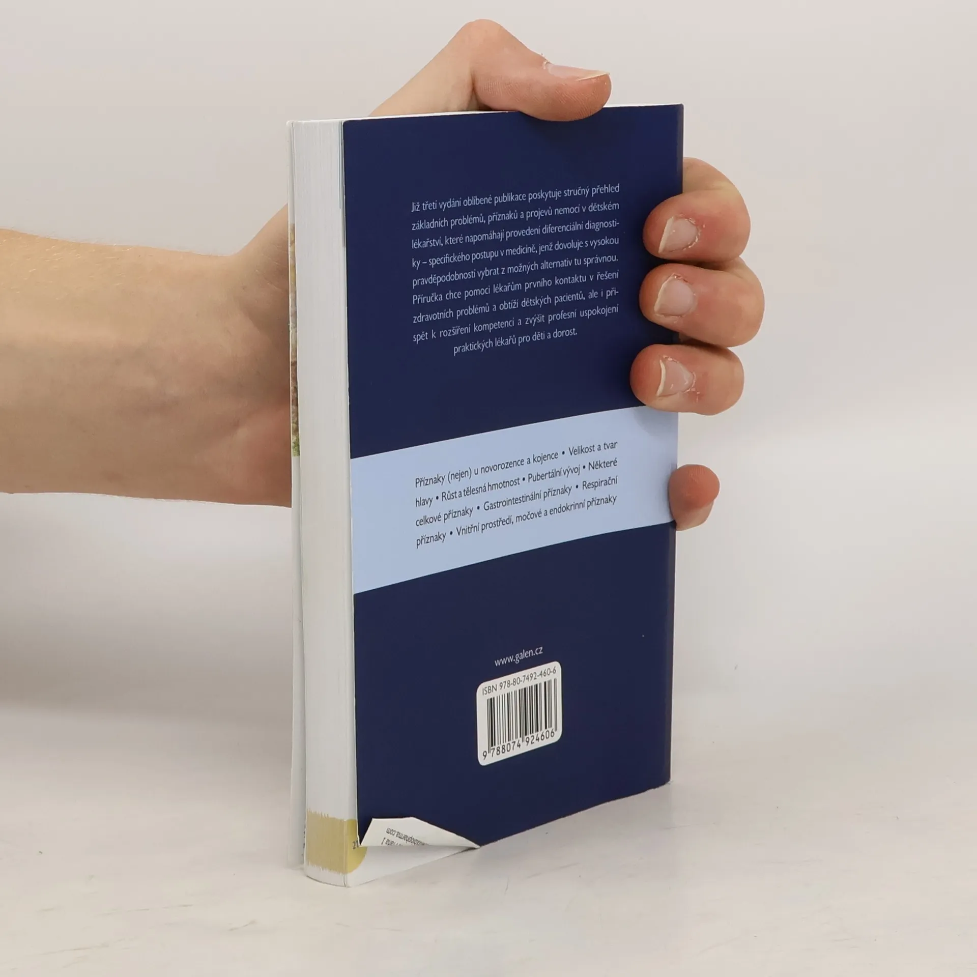 Již třetí vydání oblíbené publikace poskytuje stručný přehled základních problémů, příznaků a projevů nemocí v dětském lékařství, které napomáhají provedení diferenciální diagnostiky – specifického postupu v medicíně, jenž dovoluje s vysokou pravděpodobností vybrat z možných alternativ tu správnou. Příručka chce pomoci lékařům prvního kontaktu v řešení zdravotních problémů a obtíží dětských pacientů, ale i přispět k rozšíření kompetencí a zvýšit profesní uspokojení praktických lékařů pro děti a dorost