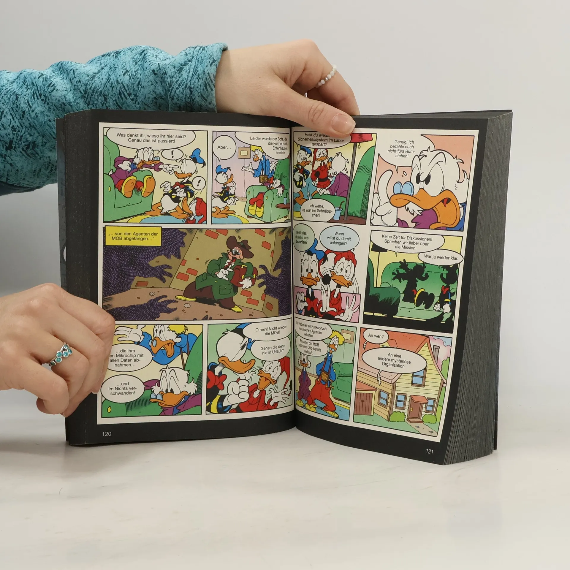 Donald und Dussel sind mal wieder im Auftrag des Duck’schen Geheimdienstes unterwegs. Im wahrsten Sinne des Wortes, nämlich kreuz und quer durch Europa. Aber nicht, um Verbrecher zu jagen, sondern einen ganz besonderen Ring mit … Geschäftssinn. Kein Wunder, dass es auch die Gegner von der MOB auf den Klunker abgesehen haben. Und die haben für die Speerspitze des DGD einige miese Tricks parat! Auch sonst hat Donald keine Verschnaufpause. Als Detektiv Duck ermittelt er im Fall eines hoch komplizierten Gemälderaubs. Dabei stehen ihm gleich zwei Frauen im Weg … also … zur Seite! Da sind bei dem Herrn Detektiv vor allem Nerven wie Drahtseile gefragt!Dieser Titel wird im sog. Fixed-Layout-Format angeboten und ist daher nur auf Geräten und Leseprogrammen nutzbar, die die Darstellung von Fixed-Layout-eBooks im epub- oder mobi/KF8-Format unterstützen. Wir empfehlen in jedem Fall die Darstellung auf Tablets und anderen Geräten mit Farbbildschirm.