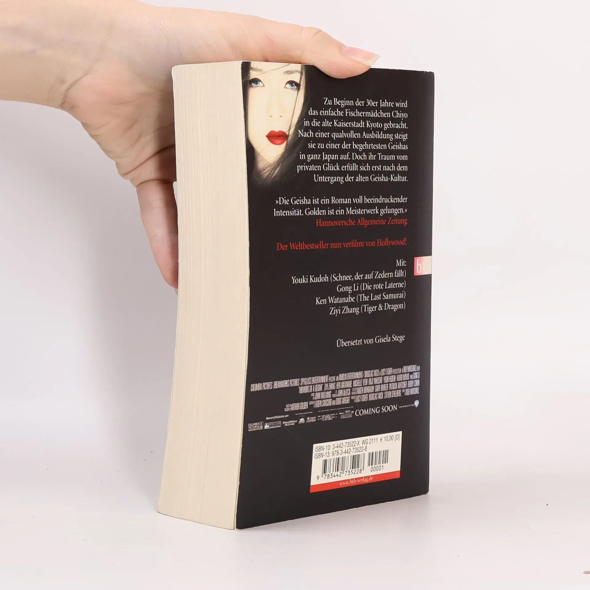 Die berührende Geschichte einer jungen Geisha. Zu Beginn der 30er Jahre wird das einfache Fischermädchen Chiyo in die alte Kaiserstadt Kyoto gebracht. Nach einer qualvollen Ausbildung steigt sie zu einer der begehrtesten Geishas in ganz Japan auf. Doch ihr Traum vom privaten Glück erfüllt sich erst nach dem Untergang der alten Geisha-Kultur. Der Weltbestseller – nun verfilmt von Hollywood. Produzent: Steven Spielberg