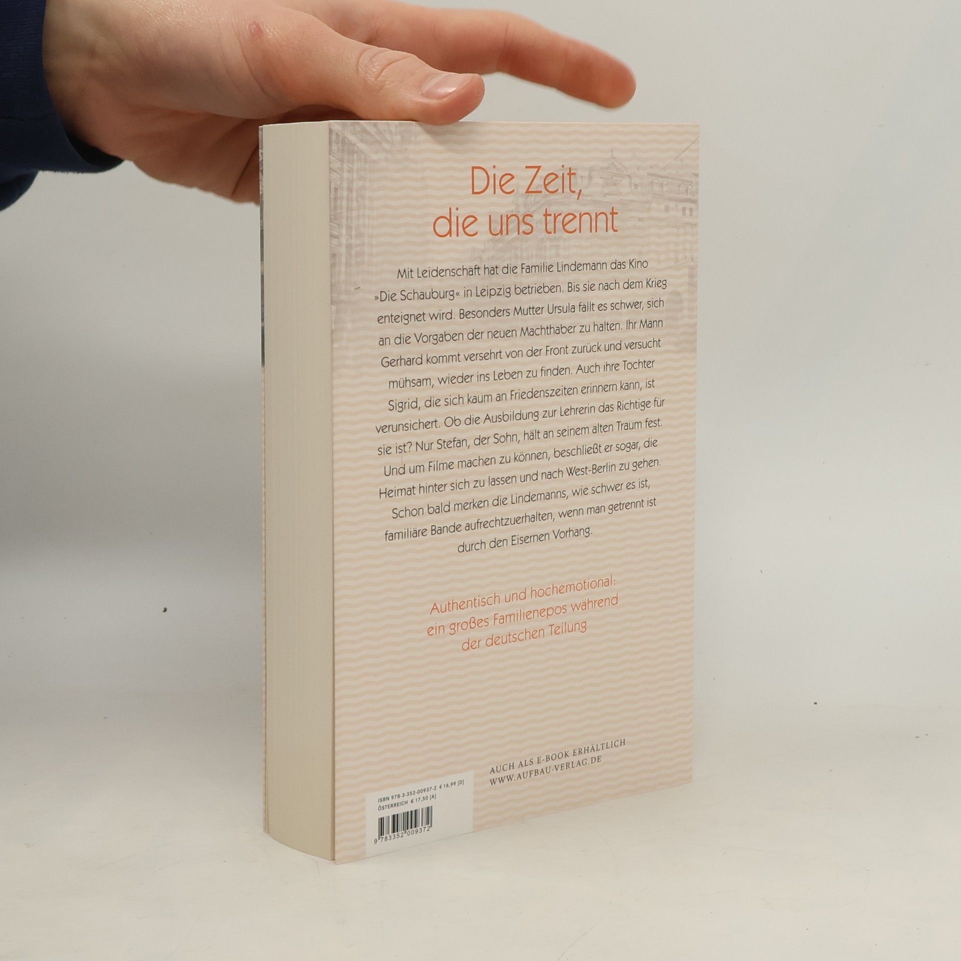 Die Zeit, die uns trennt. Mit Leidenschaft hat die Familie Lindemann das Kino „Die Schauburg“ in Leipzig betrieben. Bis sie nach dem Krieg enteignet wird. Besonders Mutter Ursula fällt es schwer, sich an die Vorgaben der neuen Machthaber zu halten. Ihr Mann Gerhard kommr versehrt von der Front zurück und versucht mühsam, wieder ins Leben zu finden. Auch ihre Tochter Sigrid, die sich kaum an Friedenszeiten erinnern kann, ist verunsichert. Ob die Ausbildung zur Lehrerin das Richtige für sie ist? Nur Stefan, der Sohn, hält an seinem alten Traum fest. Und um Filme machen zu können, beschließt er sogar, die Heimat hinter sich zu lassen und nach West-Berlin zu gehen. Schon bald merken die Lindemanns, wie schwer es ist, familiäre Bande aufrechtzuerhalten, wenn man getrennt ist durch den Eisernen Vorhang. Authentisch und hochemotional: ein großes Familienepos während der deutschen Teilung