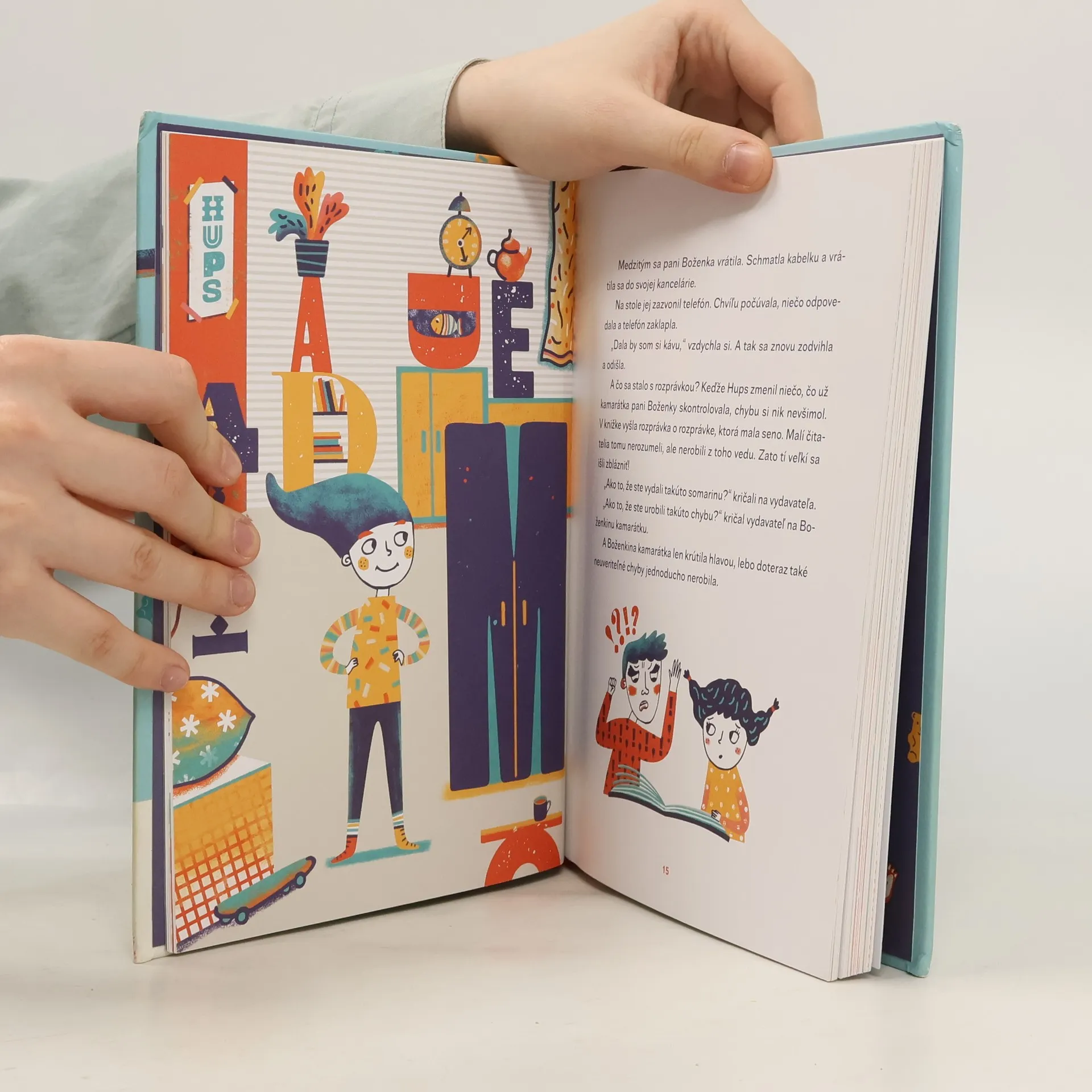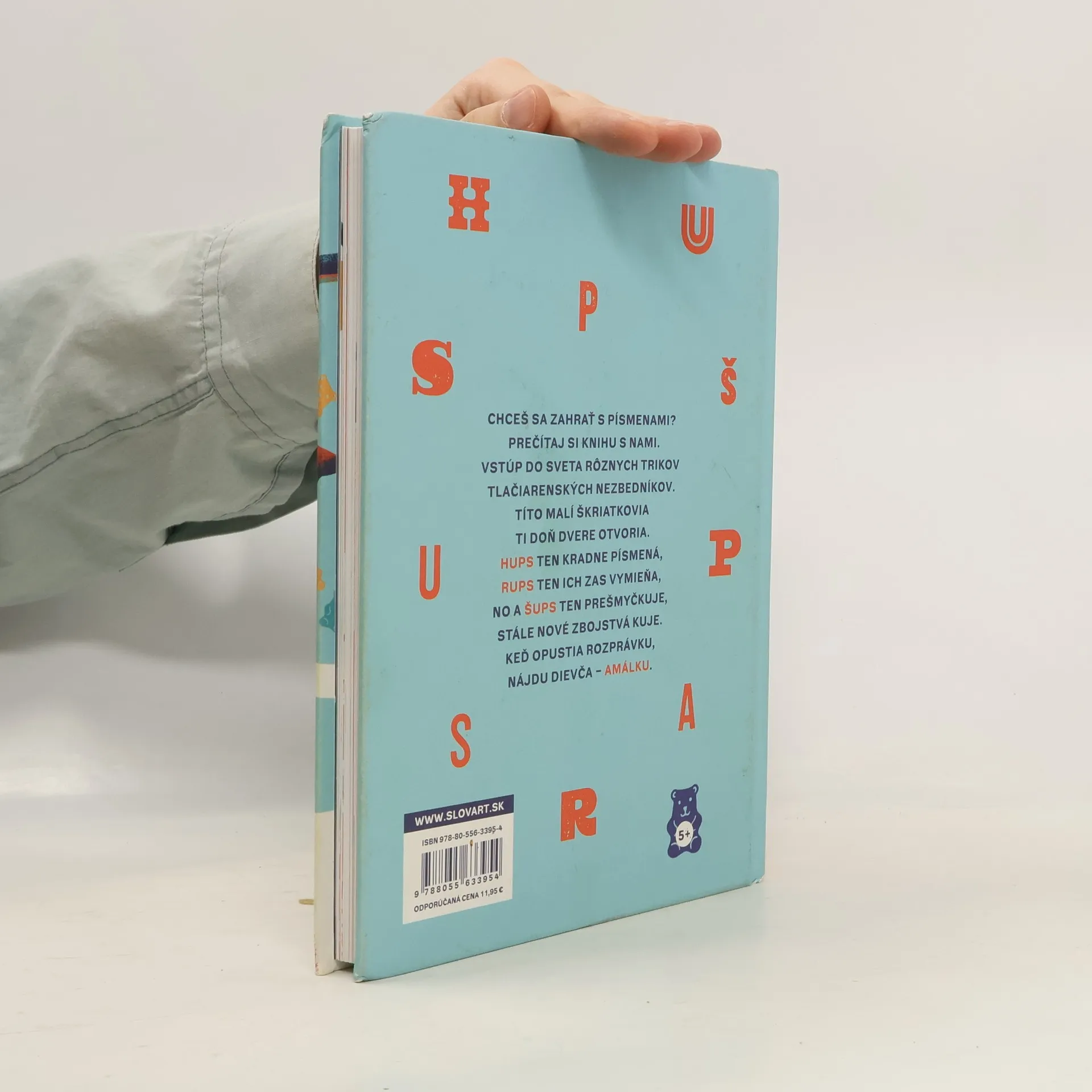 Malý Hups je tlačiarenský škriatok. Berie z kníh písmenká a robí si z nich nábytok vo svojej myšacej diere. Inokedy ich len poprehadzuje a dobre sa na tom baví. Jedného dňa sa zoznámi s Amálkou a zdá sa, že jej svojimi písmenkovými kúskami narobil kopu problémov. Ale nie, všetko je inak, písmenká v Amálkinej čítanke predsa nevymenil Hups, no Amálka sa naňho za to hnevá, ba dokonca jej po lícach stekajú kvapky slanej vody. Hups jej musí dokázať, že to nebol on, musí nájsť toho záškodníka, čo Amálku rozplakal. Koľko škriatkov môže byť v takej jednej tlačiarni? Že neviete, lebo chybu nájdete skoro v každej knihe? Jeden by to asi nezvládol, však? Tak sa môžete tešiť na stretnutie s Hupsom, Šupsom a Rupsom. Komu sa kniha môže páčiť: Čitateľom, ktorí milujú rozprávky a humorné príbehy. S Hupsom, Rupsom ani Šupsom sa nudiť nebudete.