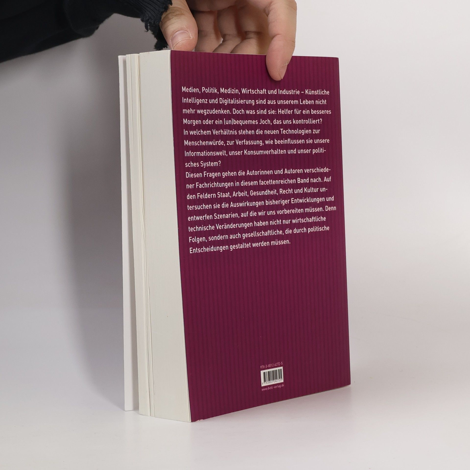 Medien, Politik, Medizin, Wirtschaft und Industrie - Künstliche Intelligenz und Digitalisierung sind aus unserem Leben nicht mehr wegzudenken. Doch was sind sie: Helfer für ein besseres Morgen oder ein (un)bequemes Joch, das uns kontrolliert? In welchem Verhältnis stehen die neuen Technologien zur Menschenwürde, zur Verfassung, wie beeinflussen sie unsere Informationswelt, unser Konsumverhalten und unser politisches System? Diesen Fragen gehen die Autorinnen und Autoren verschiedener Fachrichtungen in diesem facettenreichen Band nach. Auf den Feldern Staat, Arbeit, Gesundheit, Recht und Kultur untersuchen sie die Auswirkungen bisheriger Entwicklungen und entwerfen Szenarien, auf die wir uns vorbereiten müssen. Denn technische Veränderungen haben nicht nur wirtschaftliche Folgen, sondern auch gesellschaftliche, die durch politische Entscheidungen gestaltet werden müssen