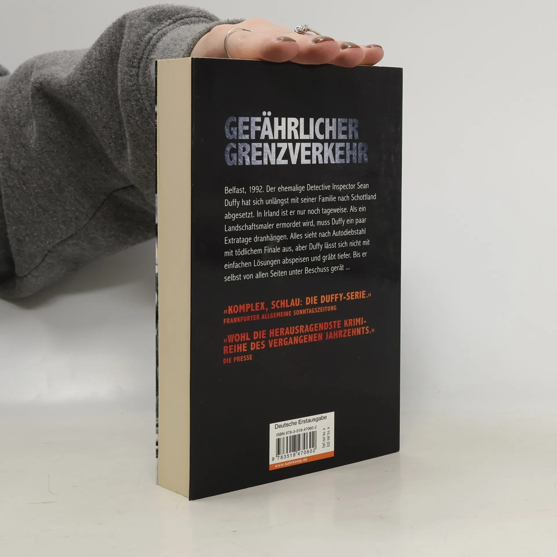 Belfast, 1992. Der ehemalige Detective Inspector Sean Duffy hat sich unlängst mit seiner Familie nach Schottland abgesetzt. In Belfast ist er nur noch tageweise. Doch als ein Landschaftsmaler ermordet wird, muss Duffy ein paar Extratage dranhängen. Alles sieht nach Autodiebstahl mit tödlichem Finale aus: Jemand hatte es auf den Jaguar des Opfers abgesehen, wurde überrascht, eine Waffe ist losgegangen. Doch ein Blick auf die Werke des Malers wirft die Frage auf, wie er damit genug Geld für einen Luxuswagen hatte verdienen können. Und wieso hat er regelmäßig eine Telefonnummer in der Republik Irland angerufen? Eine Nummer, die zu IRA-Funktionären im Exil führt. Duffy lässt sich nicht mit einfachen Lösungen abspeisen und gräbt tiefer. Bis er selbst von allen Seiten unter Beschuss gerät … Im Belfast der Neunziger ist plötzlich alles anders: Der Milchmann hat seinen Dienst quittiert, die Musik kommt von CD, und der katholische Bulle Sean Duffy ist ein Familienmensch mit Hauptwohnsitz in Schottland. Doch als er von einem dubiosen Mordfall auf den Plan gerufen wird, will Duffy unbedingt beweisen, dass ein alter Hund sehr wohl neue Tricks lernen kann.