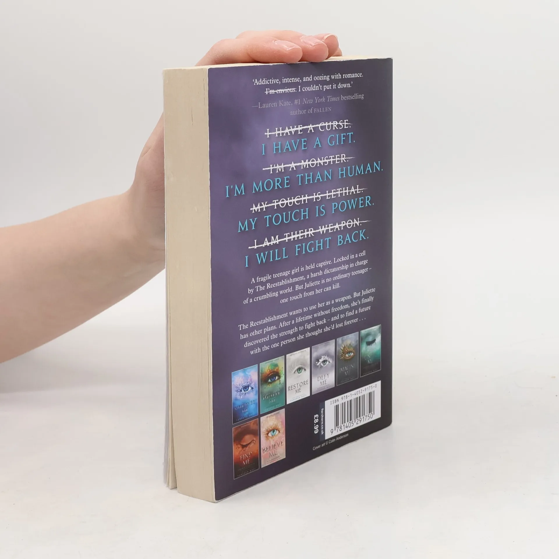 A fragile young teenage girl is held captive. Locked in a cell by The Reestablishment – a harsh dictatorship in charge of a crumbling world. This is no ordinary teenager. Juliette is a threat to The Reestablishment's power. One touch from her can kill. But not only is she a threat, she is potentially the most powerful weapon they could have. Juliette has never fought for herself before but when she’s reunited with the one person who ever cared about her, the depth of the emotion and the power within her become explosive …