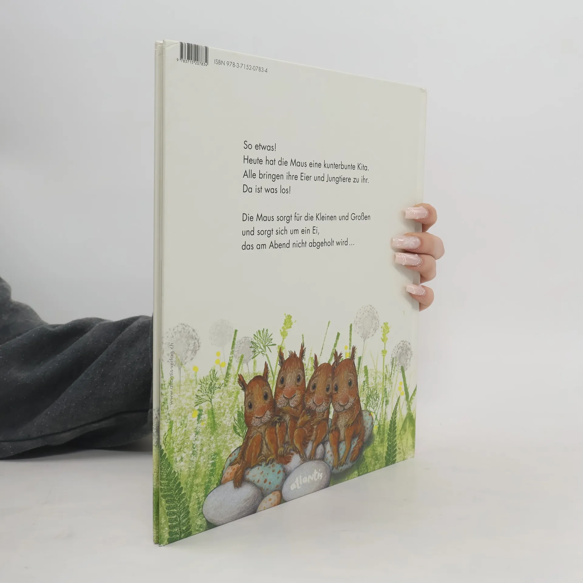 Die Maus hilft gern. Die Amsel bringt ihre Eier zu ihr. Die Meisen auch, und dann der Specht. Sogar die jungen Eichhörnchen dürfen kommen. So entsteht eine kunterbunte Kita. Hier ist viel los! Doch für die Maus ist es nicht einfach, den Überblick zu behalten: Besorgte Eltern haben ihre Spezialwünsche, die jungen Eichhörnchen möchten wieder nach Hause ... Und da ist ein Ei, von dem die Maus nicht mehr weiß, wem es gehört. Hat sie etwas falsch gemacht? Was bahnt sich da an?