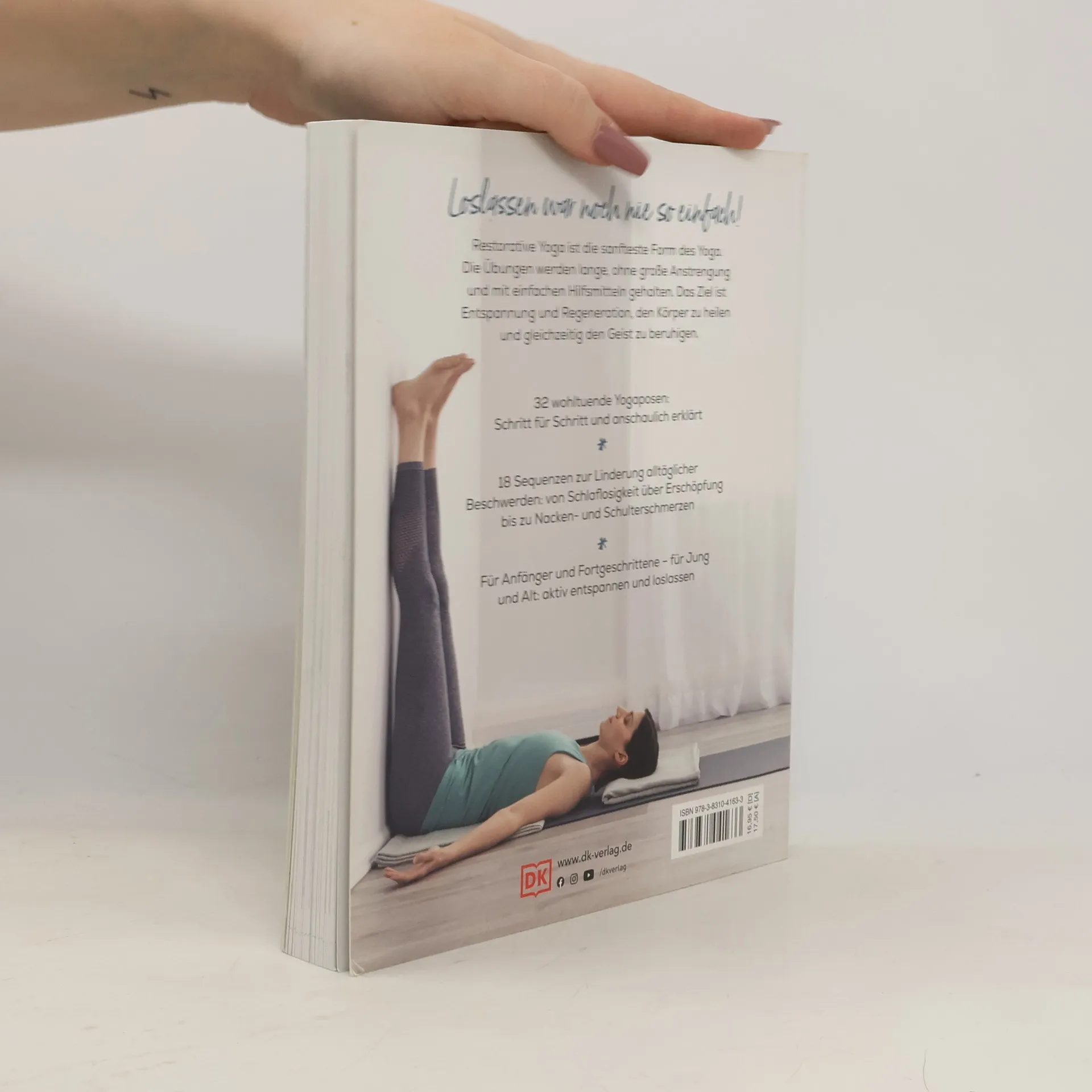 Gewinnen Sie Ruhe und neue Energie mit Restorative Yoga Einfach loslassen und die Akkus aufladen! Dieses Yoga-Buch führt Sie Schritt-für-Schritt in die sanfteste Art des Yoga ein: Restorative Yoga! Detaillierte bebilderte Anleitungen unterstützen Sie dabei, die Yoga-Stellungen ohne große Anstrengung zu halten. In 18 Sequenzen erlernen Sie über 30 Restorative Yoga-Posen gegen konkrete Beschwerden wie z.B. Schlaflosigkeit, Rückenschmerzen, Erschöpfung und mehr. Auch für absolute Yoga-Neulinge geeignet! Sanftes Yoga für zu Hause Restorative Yoga ist ein ganzheitlicher Ansatz zur Entspannung, bei dem Sie den Körper heilen und gleichzeitig die Seele beruhigen. Dabei unterstützen Sie diverse Hilfsmittel wie Decken, Kissen oder Blöcke die Übungen sanft und wirkungsvoll auszuführen. Durch die langen und sanften Yoga-Stellungen in diesem Yoga-Buch finden Sie in den natürlichen gegenwärtigen Zustand der Stressfreiheit zurück. • Ideale Einführung ins Restorative Yoga • Über 30 Yoga-Posen • 18 Sequenzen gegen konkrete Beschwerden • Hilfreiche Tipps & Infos zur Yoga-Praxis Mit viel Ruhe und Komfort begleitet Sie dieses Buch auf Ihrer Yoga-Reise zu ganzheitlicher Entspannung von Körper und Geist.