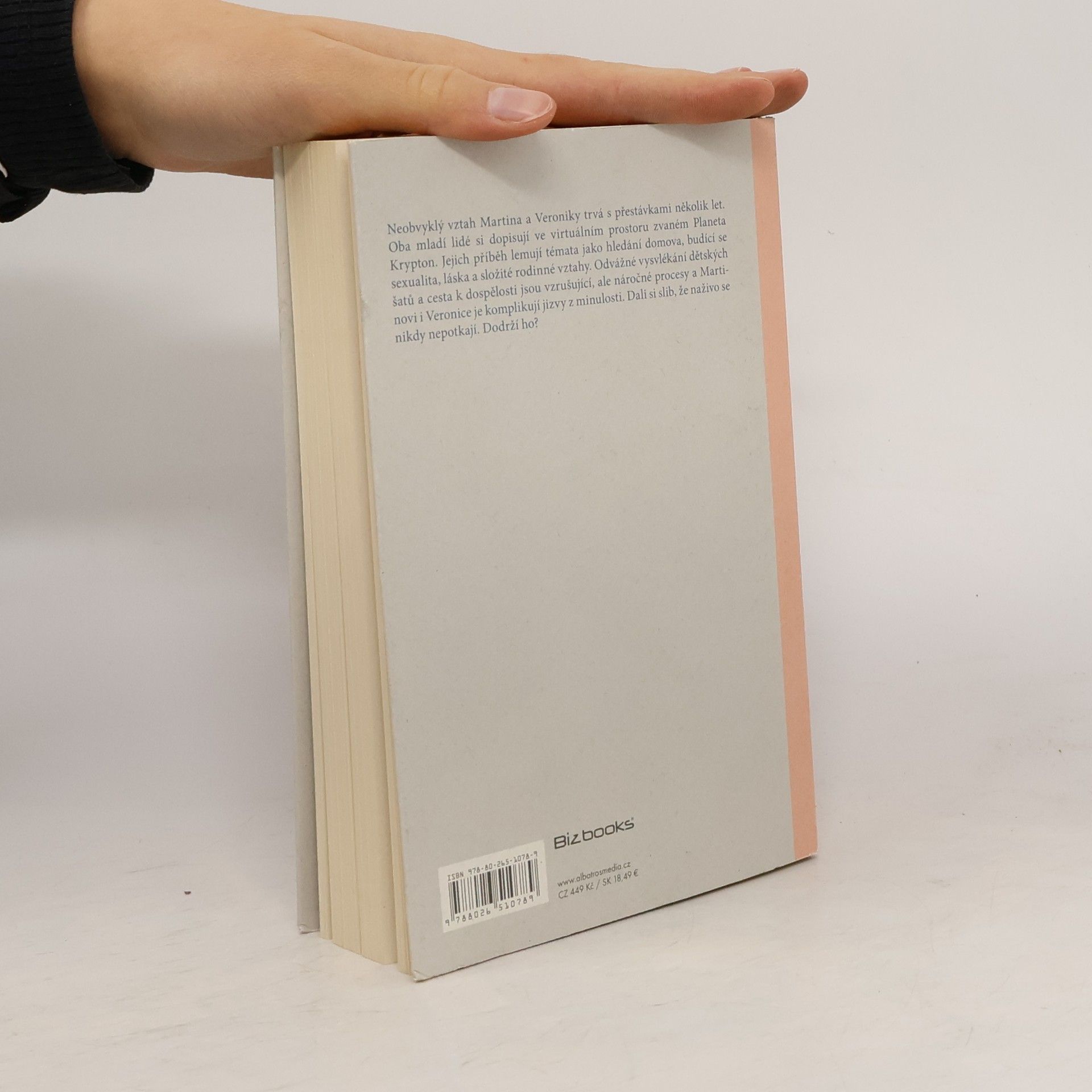 Románový debut oblíbeného herce, scenáristy a režiséra. Neobvyklý vztah Martina a Veroniky trvá s přestávkami několik let. Oba mladí lidé si dopisují ve virtuálním prostoru zvaném Planeta Krypton. Jejich příběh lemují témata jako hledání domova, budící se sexualita, láska a složité rodinné vztahy. Odvážné vysvlékání dětských šatů a cesta k dospělosti jsou vzrušující, ale náročné procesy a Martinovi i Veronice je komplikují jizvy z minulosti. Dali si slib, že naživo se nikdy nepotkají. Dodrží ho?