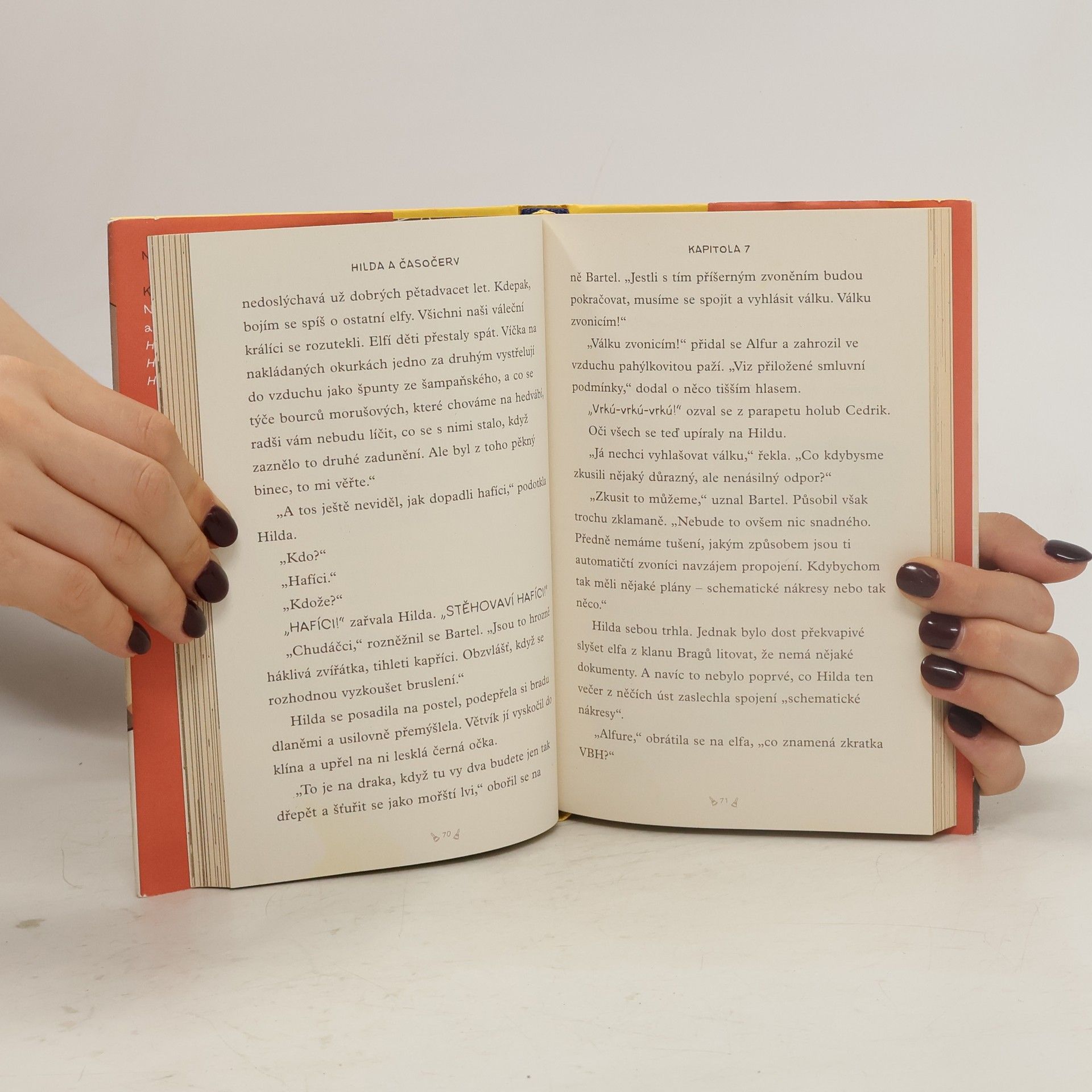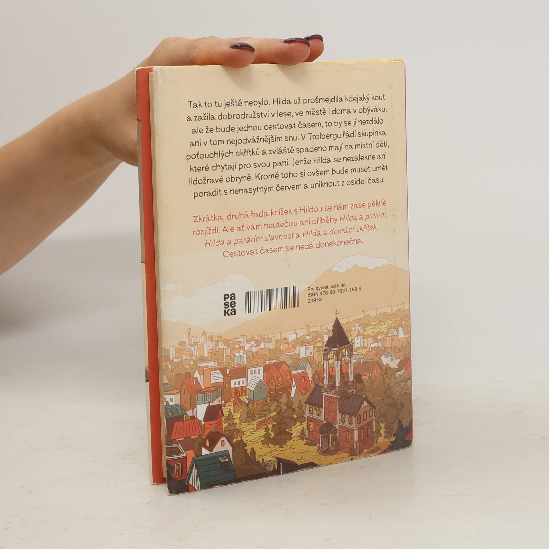 Tak to tu ještě nebylo. Hilda už prošmejdila kdejaký kout a zažila dobrodružství v lese, ve městě i doma v obýváku, ale že bude jednou cestovat časem, to by se jí nezdálo ani v tom nejodvážnějším snu. V Trolbergu řádí skupinka poťouchlých skřítků a zvláště spadeno mají na místní děti, které chytají pro svou paní. Jenže Hilda se nezalekne ani lidožravé obryně. Kromě toho si však bude muset umět poradit s nenasytným červem a uniknout z osidel času. Zkrátka, druhá série knížek s neohroženou Hildou se nám zase pěkně rozjíždí. Ale ať vám neutečou ani příběhy Hilda a pidlidi, Hilda a parádní slavnost a Hilda a domácí skřítek. Cestovat časem se nedá donekonečna.