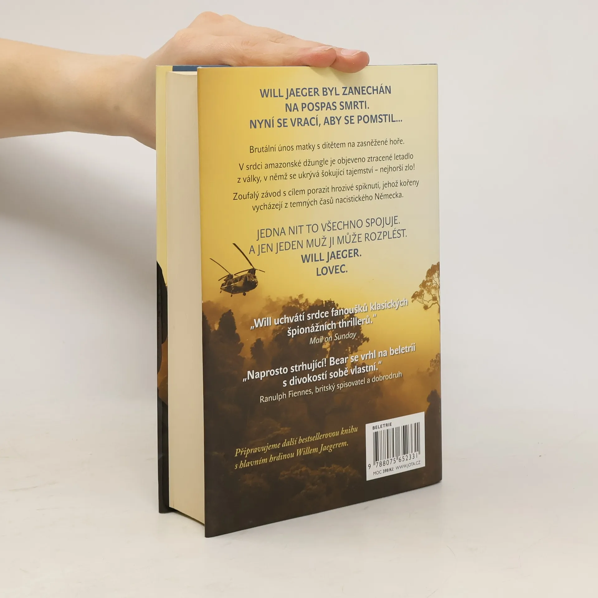 Bývalý elitní voják Will Jaeger, zdrcený brutálním únosem a nejspíš i vraždou manželky a syna, uteče až na samý konec světa, aby se tam skryl a pokusil se znovu nalézt klid. V africkém vězení, kde trpí neprávem, je však objeven a přinucen podniknout ještě jednu poslední misi. Má stanout tváří v tvář kruté minulosti. Jaeger souhlasí, že povede ostře sledovanou expedici – dokumentární natáčení a reality show v jednom – do Cordillera de los Dios v odlehlé amazonské džungli. V temném srdci ztraceného světa „Božích hor“ leží totiž záhadné letadlo z druhé světové války, stroj, který střeží výbušné tajemství. Temné síly udělají všechno pro to, aby válečný letoun navždy zůstal utajen, a Will Jaeger, aniž tuší, jde proti nim. Když se přidá k týmu bývalých elitních bojovníků, kam patří i ledově klidná ruská agentka Irina Narovová, zmocňuje se ho neodbytný pocit, že vrak letadla ukrývá i odpověď na otázku, kterou už tak dlouho hledá: jaká je totožnost únosců jeho ženy a syna. Brzy však udeří pohroma a Jaeger s týmem musí bojovat o život v extrémních podmínkách džungle. Navíc se ve víru napínavých dobrodružství ukazuje, že šokující záhada z minulosti spojuje současné dění s hrůzami v nacistickém Německu.