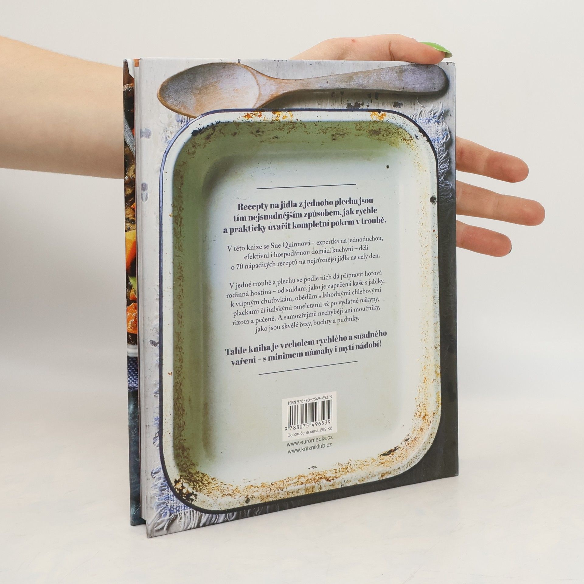 Jeden plech na pečení, jedno kompletní jídlo – žádný zmatek a minimum špinavého nádobí! Příprava jídla v jednom pekáči je ještě lepší než vaření v jednom hrnci: je to ten nejrychlejší způsob, jak rychle připravit chutné jídlo. V jednom plechu můžete chystat pokrmy pro celou rodinu už od rána, začít můžete ovesnou kaší zapečenou s jablky nebo úžasnými francouzskými toasty, pokračovat špenátovým nákypem, kuřecím fajitas či teplými saláty k obědu a přes lahodné koláče k svačině přejít třeba k pikantní zelenině s cizrnou k večeři. A protože nemusíte mýt tolik nádobí, můžete si po večeři dát ještě karamelové brownies! Sue Quinnová je kouzelnice v přípravě jednoduchých, ekonomicky nenáročných jídel. Jednoduše a srozumitelně psané recepty doplňuje užitečnými tipy, jak co nejlépe využít suroviny a pokrmy dochutit.