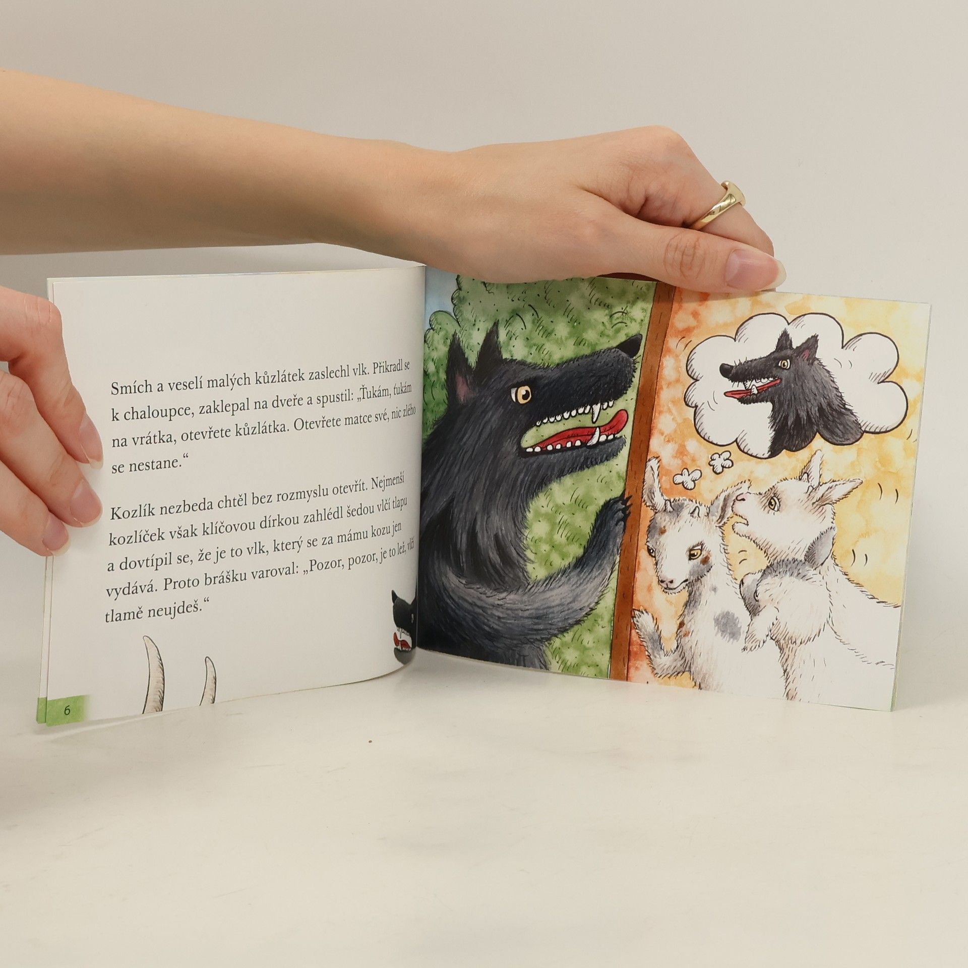 Když kůzlátka neposlechnou mámu kozu a otevřou vrátka vlkovi, je s nimi zle. Jaké štěstí, že nejmladší kozlík jedl vtipnou kaši a dokáže své sourozence zachránit.