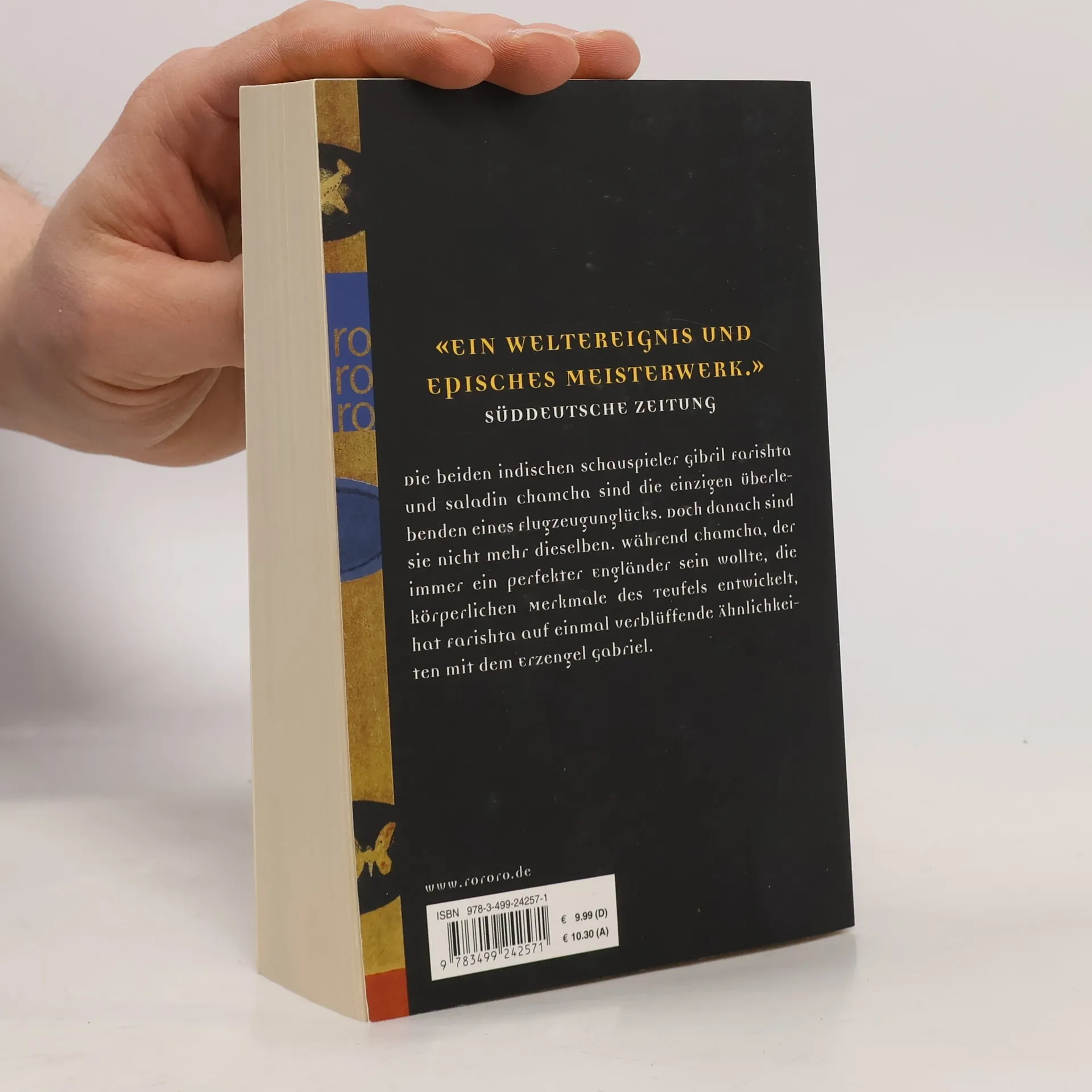 „Ein Weltereignis und episches Meisterwerk.“ (Süddeutsche Zeitung) Die beiden indischen Schauspieler Gibril Farishta und Saladin Chamcha sind die einzigen Überlebenden eines Flugzeugunglücks. Doch danach sind sie nicht mehr dieselben. Während Chamcha, der immer ein perfekter Engländer sein wollte, die körperlichen Merkmale des Teufels entwickelt, hat Farishta auf einmal verblüffende Ähnlichkeiten mit dem Erzengel Gabriel.