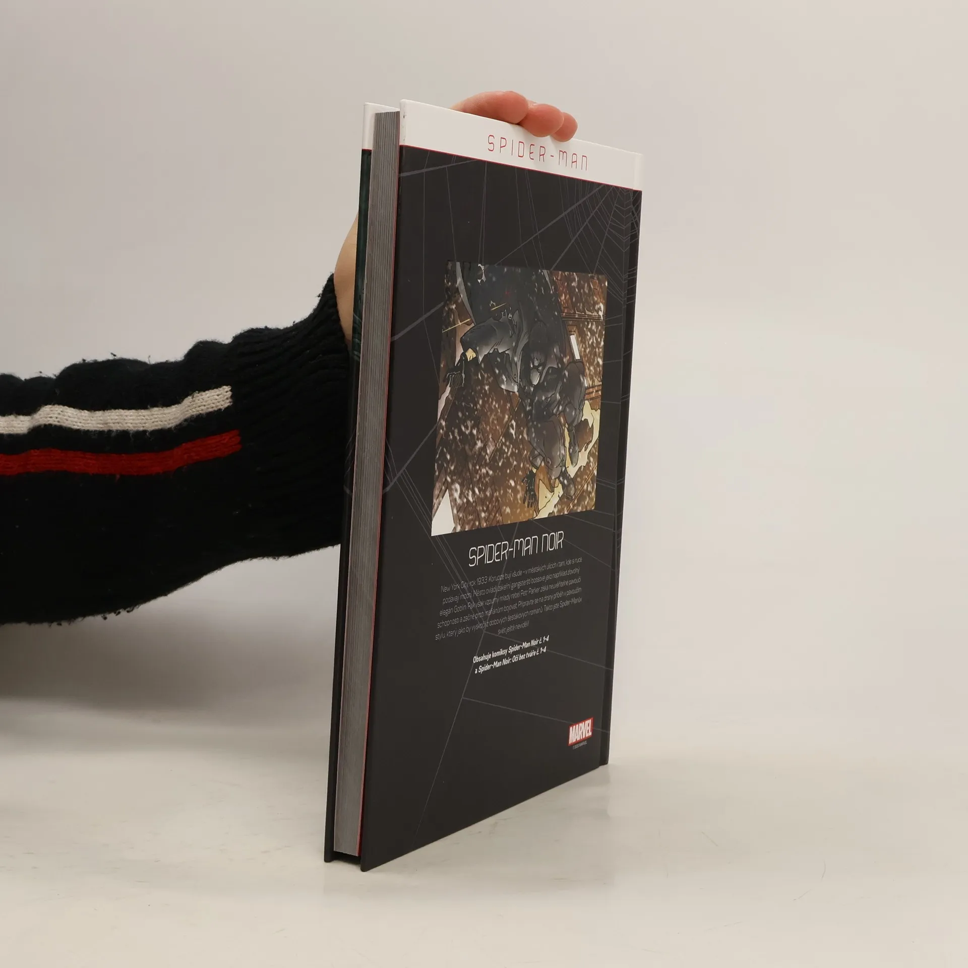 New York City, rok 1933. Korupce bují všude - v městských ulicích i tam, kde si ruce podávají mocní. Město ovládli zákeřní gangsterští bossové jako například zlovolný elegán Goblin. Pak však vzpurný mladý rebel Petr Parker získá neuvěřitelné pavoučí schopnosti a začne proti mafiánům bojovat. Připravte se na drsný příběh v pavoučím stylu, který jako by vyskočil z dobových šestákových románů. Takto jste Spider-Manův svět ještě neviděli! Obsahuje příběhy: Spider-Man Noir Oči bez tváře Obsahuje sešity sérií Spider-Man Noir #1-4 a Spider-Man Noir: Eyes Without a Face #1-4