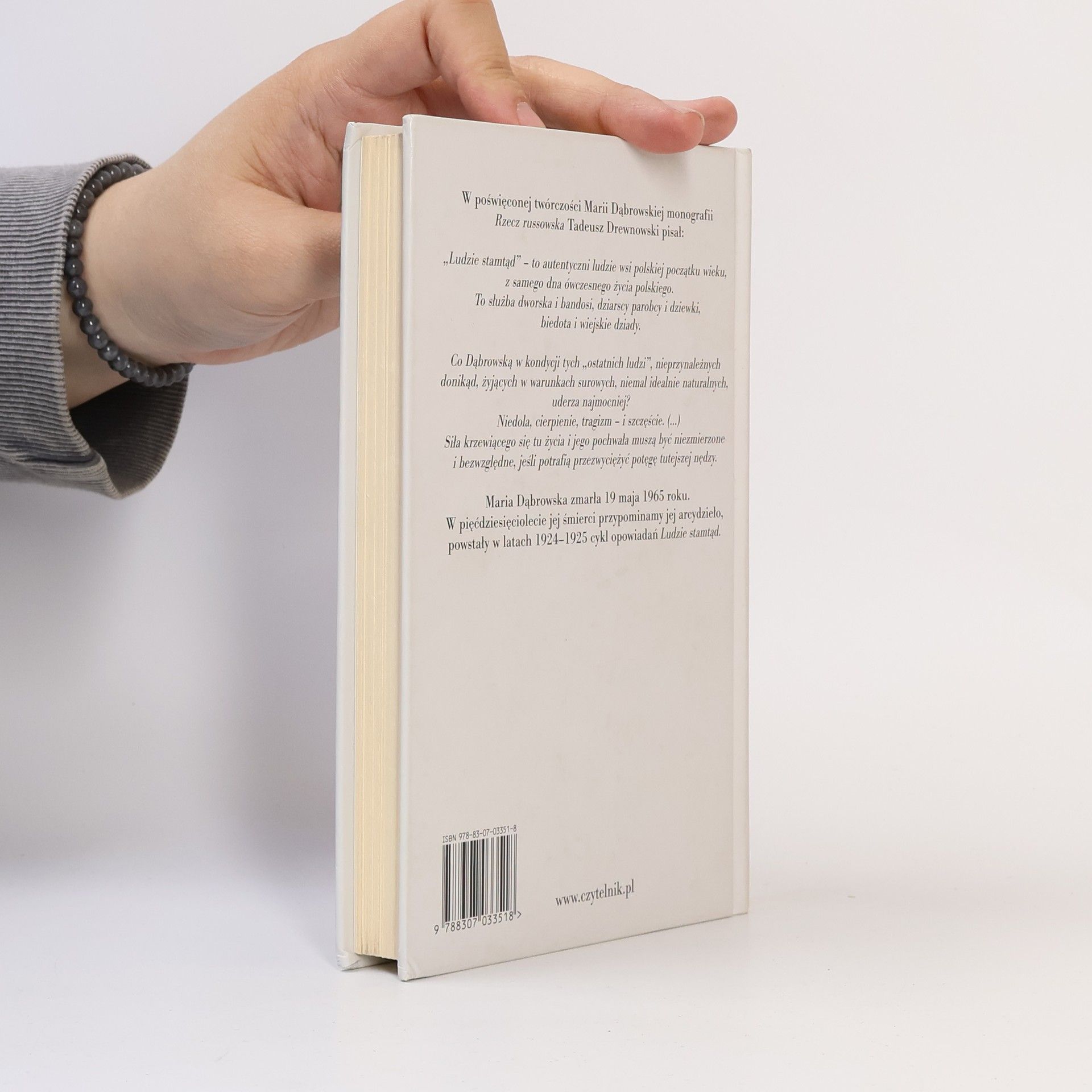 „Ludzie stamtąd” – to autentyczni ludzie wsi polskiej początku wieku, z samego dna ówczesnego życia polskiego. To służba dworska i bandosi, dziarscy parobcy i dziewki, biedota i wiejskie dziady. (...) Co Dąbrowską w kondycji tych „ostatnich ludzi”, nieprzynależnych donikąd, żyjących w warunkach surowych, niemal idealnie naturalnych, uderza najmocniej? Niedola, cierpienie, tragizm – i szczęście. (...) Siła krzewiącego się tu życia i jego pochwała muszą być niezmierzone i bezwzględne, jeśli potrafią przezwyciężyć potęgę tutejszej nędzy. (...) Maria Dąbrowska zmarła 19 maja 1965 roku. W pięćdziesięciolecie jej śmierci przypominamy jej arcydzieło, powstały w latach 1924–1925 cykl opowiadań Ludzie stamtąd.