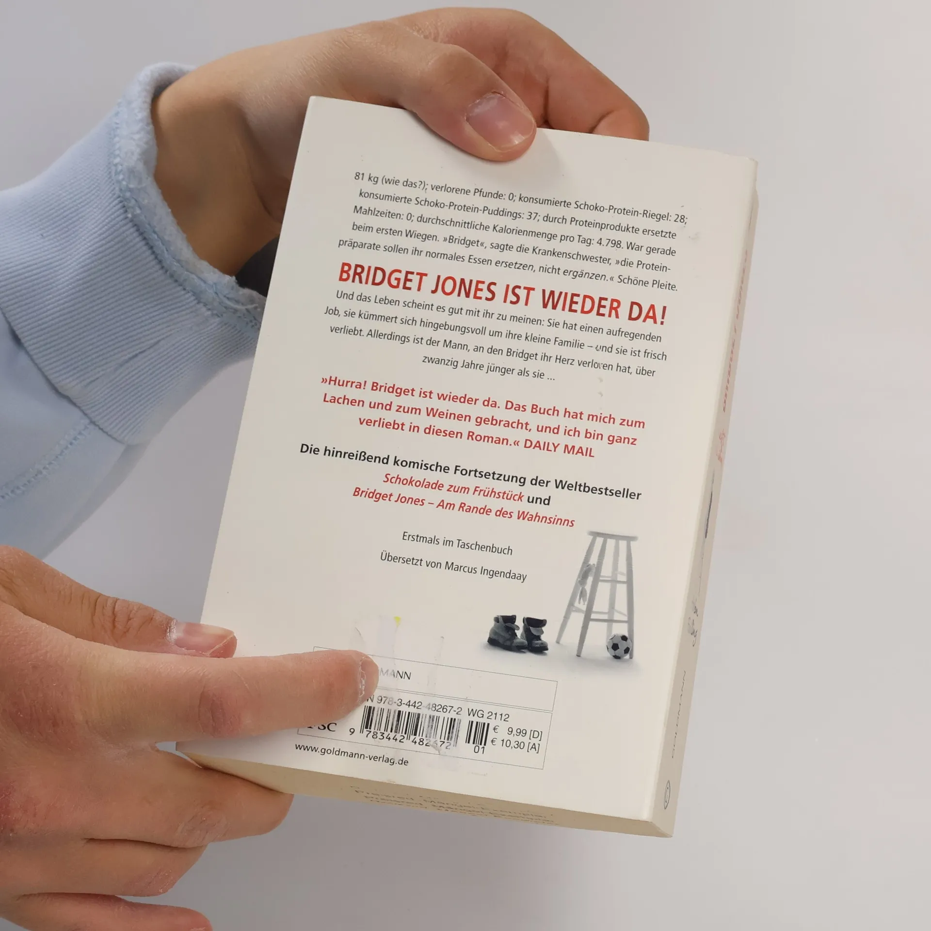 Bridget Jones ist wieder da! Und das Leben scheint es gut mit ihr zu meinen: Sie hat einen aufregenden Job, sie kümmert sich hingebungsvoll um ihre kleine Familie –und sie ist frisch verliebt. Leider gibt es ein paar Kleinigkeiten, die ihr Glück trüben. Ihr Job als Drehbuchautorin ist nicht nur aufregend, er bringt sie auch mit sehr seltsamen Menschen in Kontakt. Ihren Kindern fehlt der Vater. Und der Mann, an den Bridget ihr Herz verloren hat, ist über zwanzig Jahre jünger als sie ...