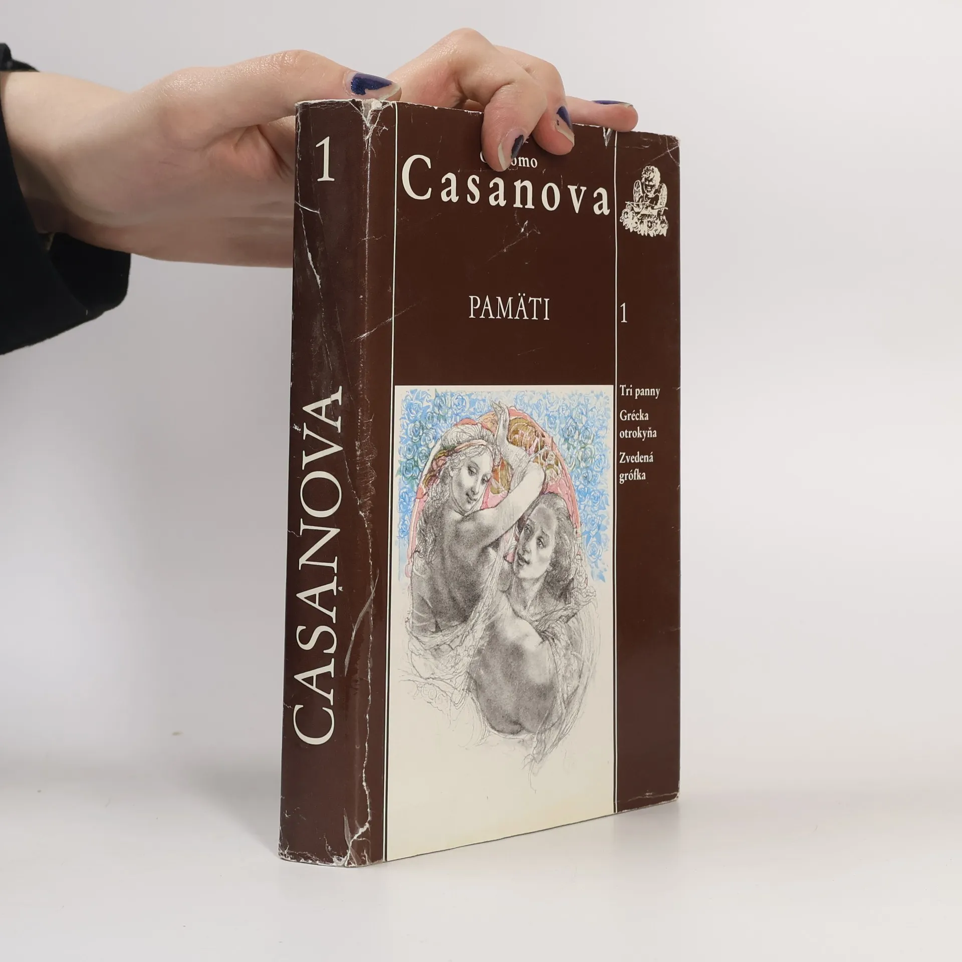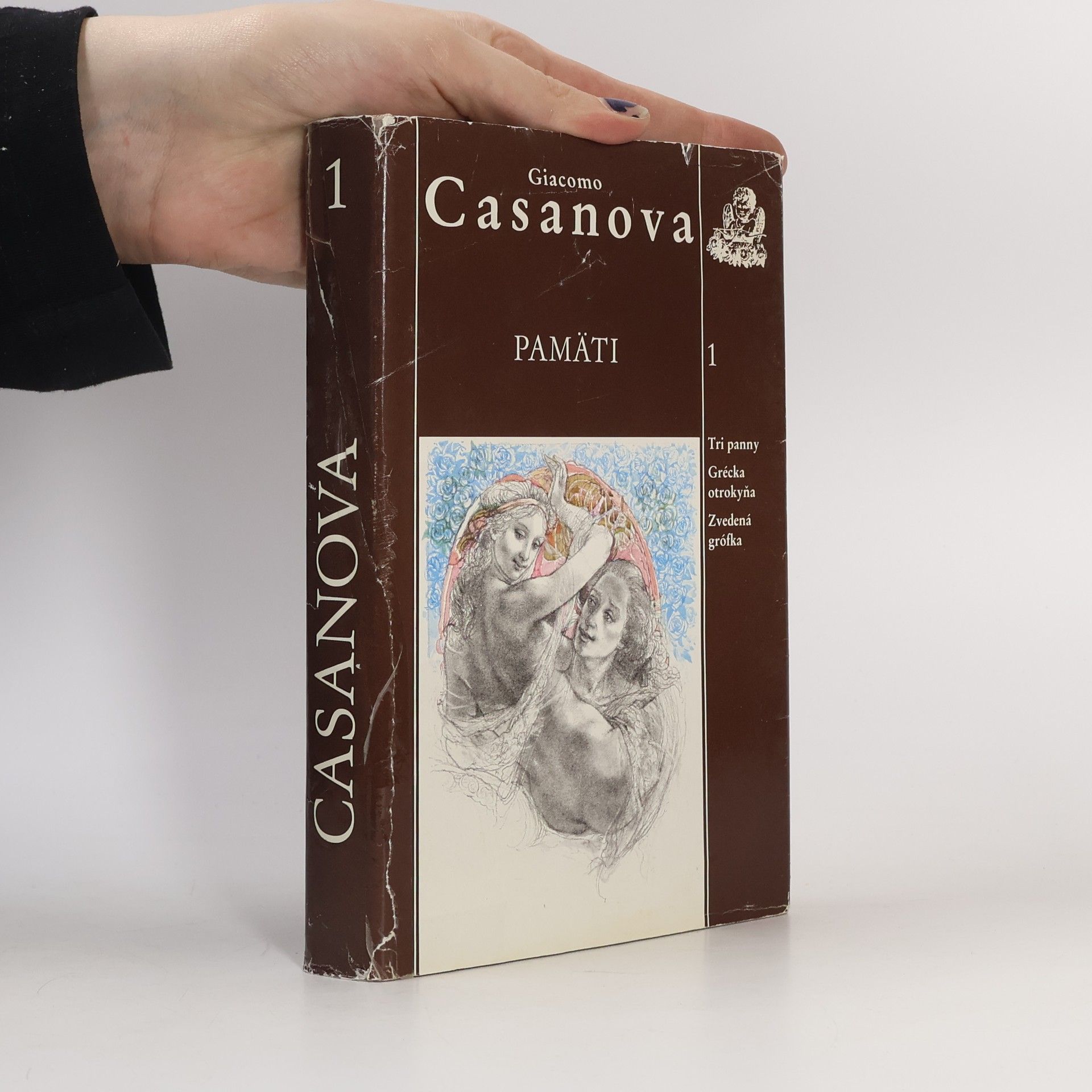 Pamäte Giacoma Casanovu, prvý zväzok. Obsahuje tri časti: Tri panny; Grécka otrokyňa; Zvedená grófka V troch dieloch prvého zväzku Pamätí, kteoré slovenským čitatelom předkládáme ako reedíciu, nás auto oboznamuje s prvými krokmi v svojom živote, s detsvom, štúdiom, s radosťami a ťažkosťami v cirkevnej a vojenske službe. Jadrom celého rozprávania je však citovový, či skor lúbostný život, najrozličnejšie dobrodužstvá s mladými dievčatami i so skúsenými ženami: Casanova svoje erotické zážitky nijako necenzuruje a neuhládza, je dosledný vo svoje zásade nielen dosiahnuť čo najväčšie rozkoše, ale o nich aj otvorene písať. Pokial ide o ženy, neraz vela riskuje a vydáva sa napospas všetkým nebezpečnstvám.