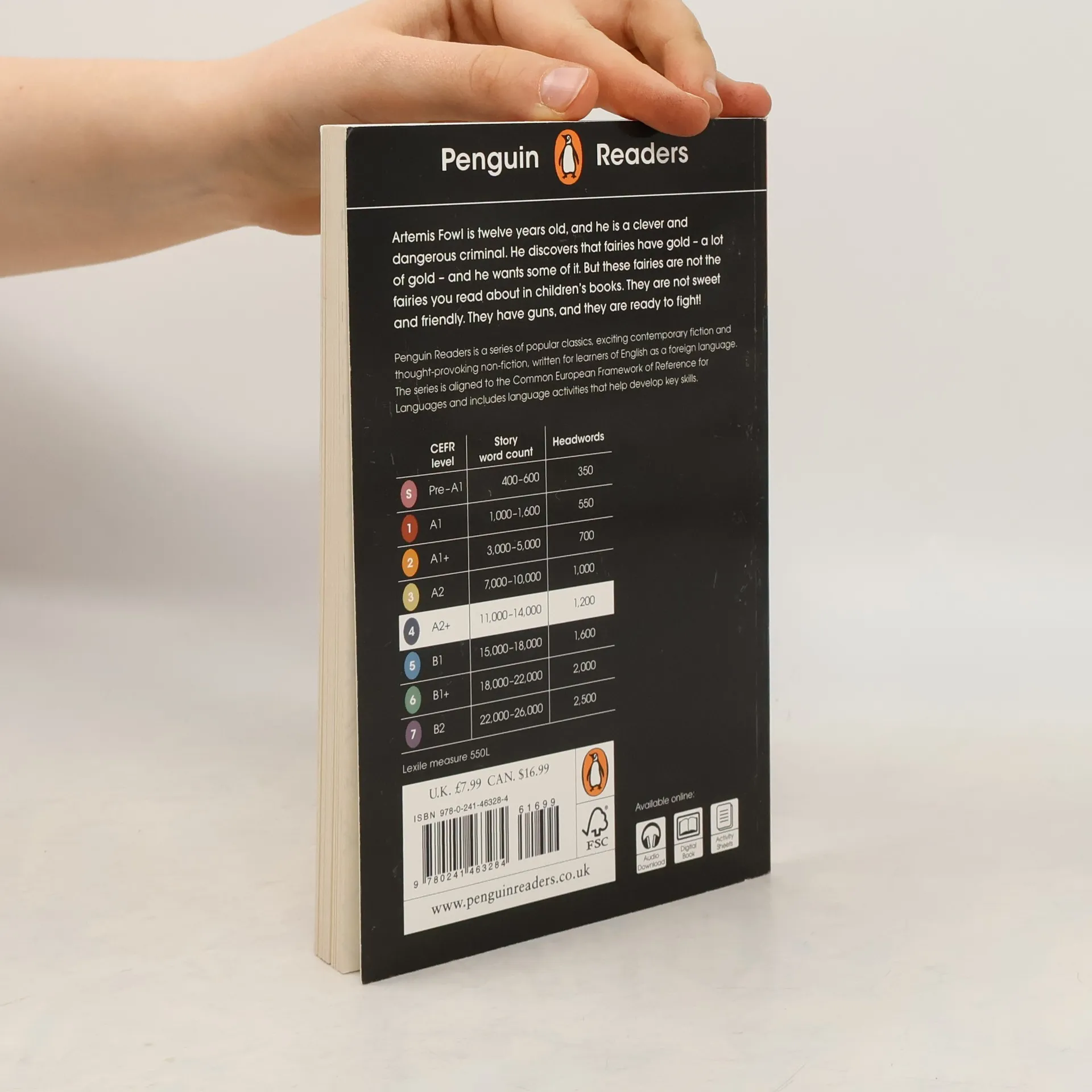 Penguin Readers is an ELT graded reader series for learners of English as a foreign language. With carefully adapted text, new illustrations and language learning exercises, the print edition also includes instructions to access supporting material online.Titles include popular classics, exciting contemporary fiction, and thought-provoking non-fiction, introducing language learners to bestselling authors and compelling content.The eight levels of Penguin Readers follow the Common European Framework of Reference for language learning (CEFR). Exercises at the back of each Reader help language learners to practise grammar, vocabulary, and key exam skills. Before, during and after-reading questions test readers' story comprehension and develop vocabulary.Visit the Penguin Readers websiteExclusively with the print edition, readers can unlock online resources including a digital book, audio edition, lesson plans and answer keys.Artemis Fowl is twelve years old and he is a clever and dangerous criminal. He discovers that fairies have gold - a lot of gold - and he wants some of it. But these fairies are not the fairies you read about in children's books. They are not sweet and friendly. They have guns, and they are ready to fight.