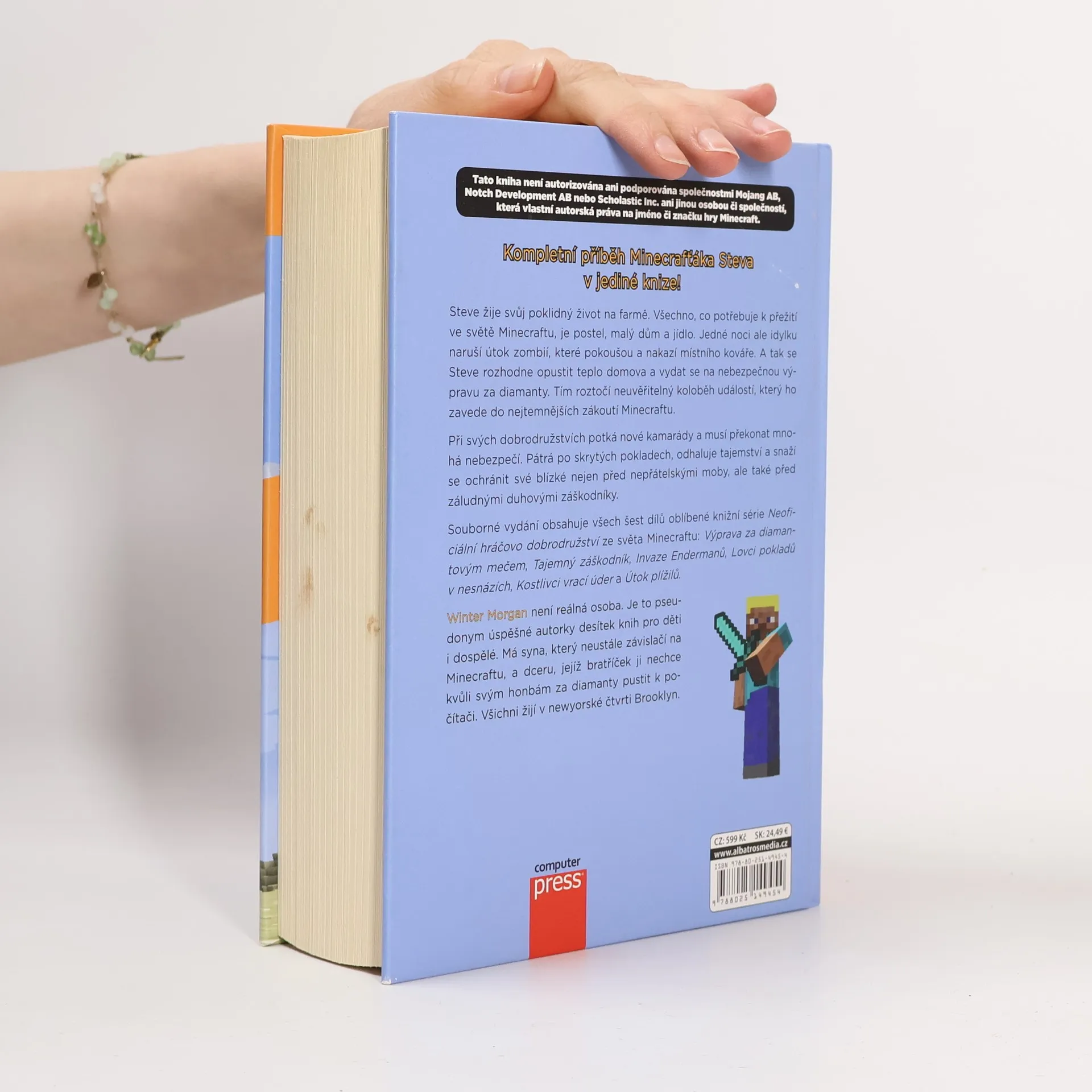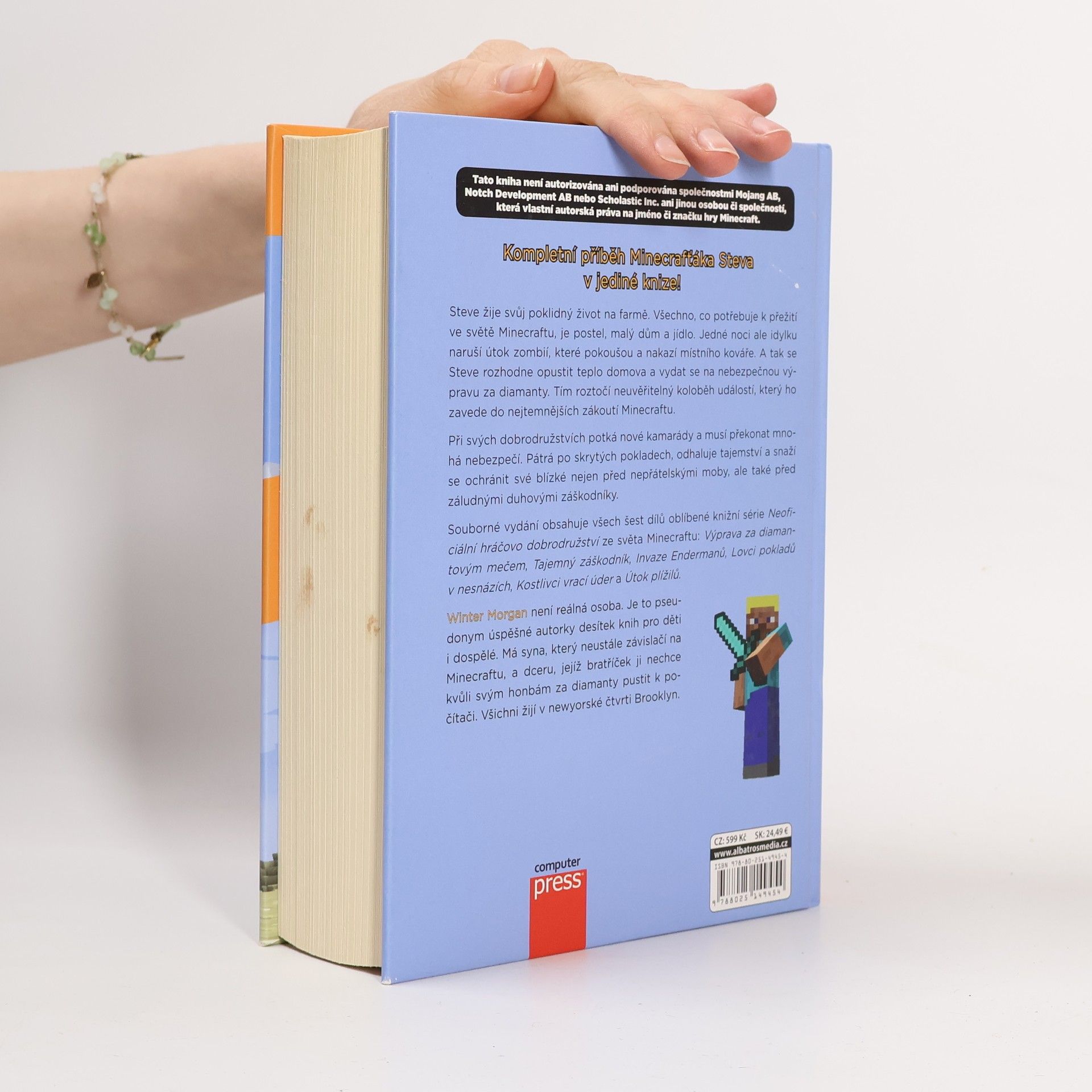 Steve žije svůj poklidný život na farmě. Všechno, co potřebuje k přežití ve světě Minecraftu, je postel, malý dům a jídlo. Jedné noci ale poklidnou idylku naruší útok zombií, které pokoušou a nakazí místního kováře. A tak se Steve rozhodne opustit teplo domova a vydat se na nebezpečnou výpravu za diamanty. Tím roztočí neuvěřitelný koloběh událostí, který ho zavede do nejtemnějších zákoutí Minecraftu. Souborné vydání obsahuje všech šest dílů série o minecrafťáku Stevovi. Největší porce dobrodružství ze světa Minecraftu v jedné knize
