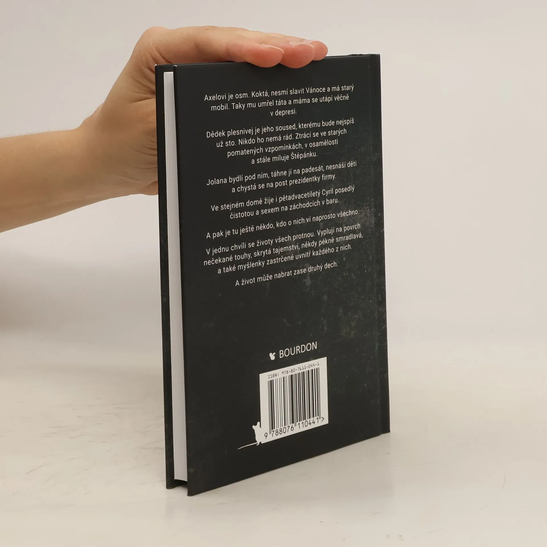 Axelovi je osm. Koktá, nesmí slavit Vánoce a má starý mobil. Taky mu umřel táta a máma se utápí věčně v depresi. Dědek plesnivej je jeho soused, kterému bude nejspíš už sto. Nikdo ho nemá rád. Ztrácí se ve starých pomatených vzpomínkách, v osamělosti a stále miluje Štěpánku. Jolana bydlí pod ním, táhne jí na padesát, nesnáší děti a chystá se na post prezidentky firmy. Ve stejném domě žije i pětadvacetiletý Cyril posedlý čistotou a sexem na záchodcích v baru. A pak je tu ještě někdo, kdo o nich ví naprosto všechno. V jednu chvíli se životy všech protnou. Vyplují na povrch nečekané touhy, skrytá tajemství, někdy pěkně smradlavá, a také myšlenky zastrčené uvnitř každého z nich. A život může nabrat zase druhý dech.