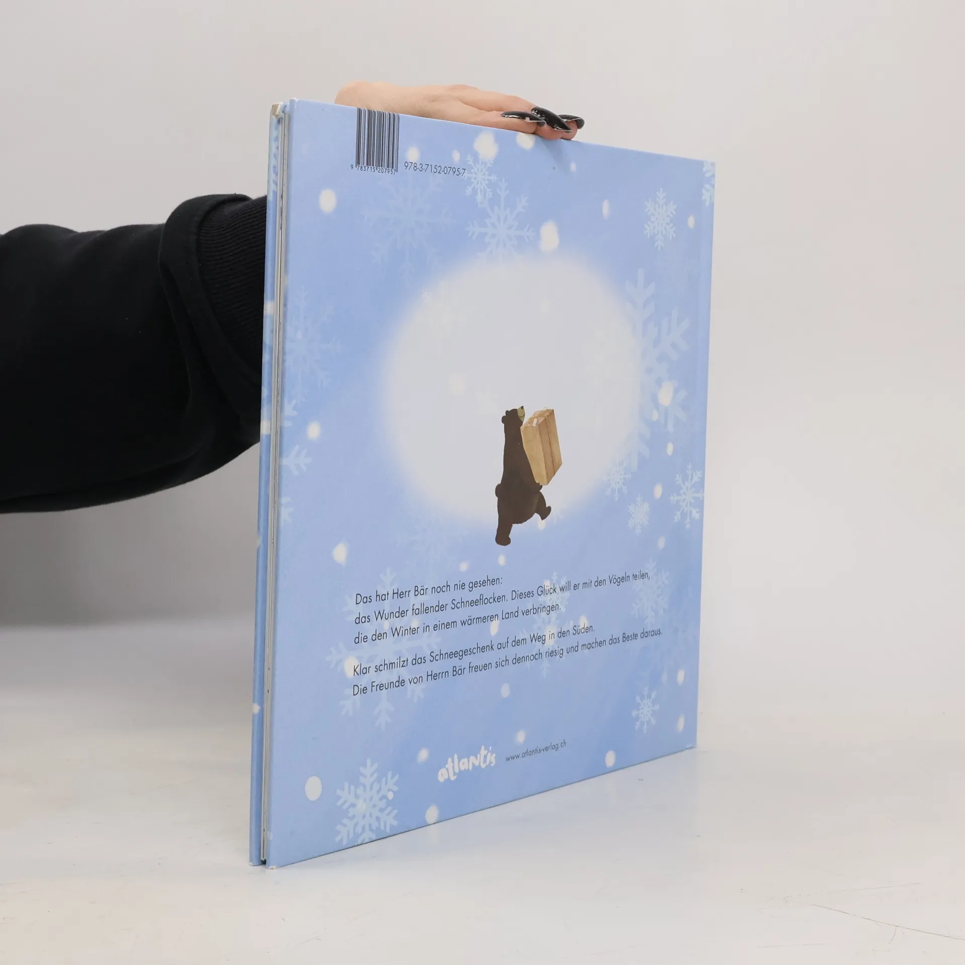 Das hat der Bär noch nie gesehen: Das Wunder fallender Schneeflocken. Lärm hat ihn aus dem Winterschlaf geweckt, verärgert ist er nach draußen gestapft. Und jetzt dieser Zauber! Er will das Schneeglück mit seinen Freunden teilen. Aber die zwei Girlitze sind in die Wärme gezogen. Was soll der Bär nun tun? Die Maus rät ihm, einen Schneemann zu bauen und diesen den Vögeln zu senden. Klar ist die Überraschung geschmolzen, bis sie ankommt. Aber die beiden Girlitze wissen sich zu helfen und freuen sich an dem Geschenk.