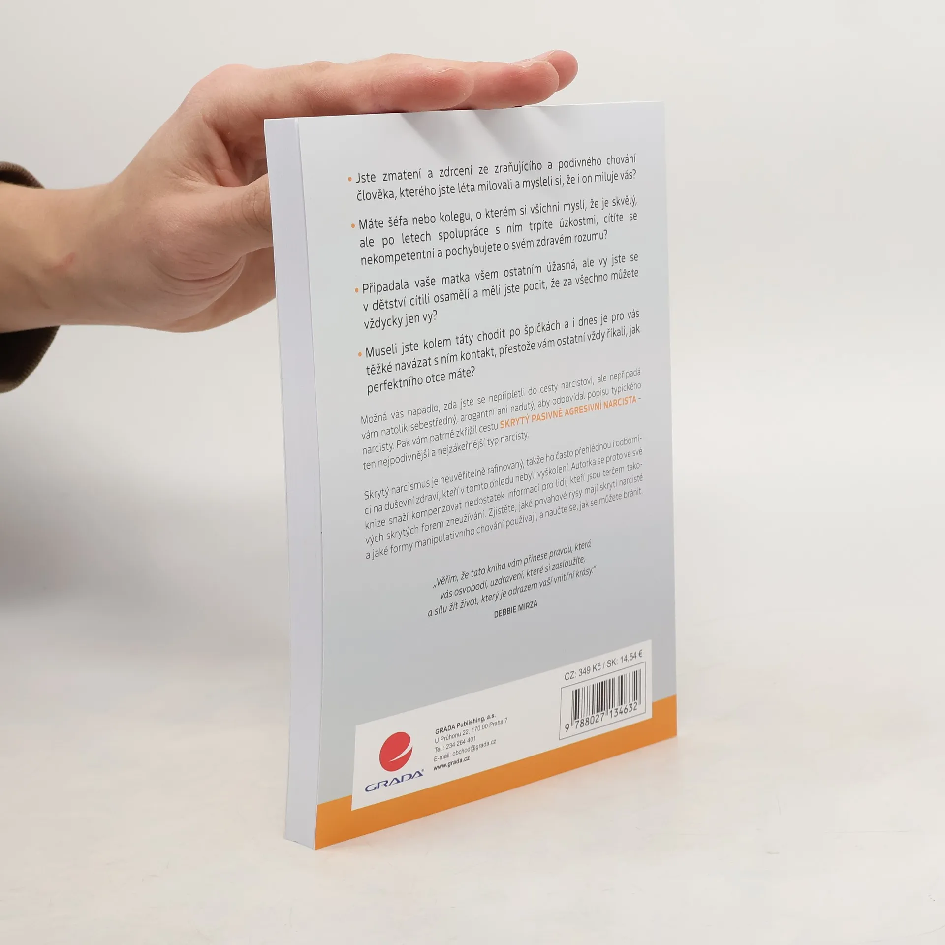 Jste zmatení a zdrcení ze zraňujícího a podivného chování člověka, kterého jste léta milovali a mysleli si, že i on miluje vás?Máte šéfa nebo kolegu, o kterém si všichni myslí, že je skvělý, ale po letech spolupráce s ním trpíte úzkostmi, cítíte se nekompetentní a pochybujete o svém zdravém rozumu?Připadala vaše matka všem ostatním úžasná, ale vy jste se v dětství cítili osamělí a měli jste pocit, že za všechno můžete vždycky jen vy?Museli jste kolem táty chodit po špičkách a i dnes je pro vás těžké navázat s ním kontakt, přestože vám ostatní vždy říkali, jak perfektního otce máte?Možná si lámete hlavu s tím, jestli jste se nepřipletli do cesty narcistovi, ale nepřipadá vám natolik sebestředný, arogantní ani nadutý, aby odpovídal popisu typického narcisty. Pak vám patrně zkřížil cestu SKRYTÝ PASIVNĚ AGRESIVNÍ NARCISTA – ten nejpodivnější a nejzákeřnější typ narcisty.Skrytý narcismus je neuvěřitelně rafinovaný, takže ho často přehlédnou i odborníci na duševní zdraví, kteří v tomto ohledu nebyli vyškolení. Autorka se proto ve své knize snaží kompenzovat nedostatek informací pro lidi, kteří jsou terčem takových skrytých forem zneužívání. Zjistěte, jaké povahové rysy mají skrytí narcisté a jaké formy manipulativního chování používají, a naučte se, jak se můžete bránit. „Věřím, že tato kniha vám přinese pravdu, která vás osvobodí, uzdravení, které si zasloužíte, a sílu žít život, který je odrazem vaší vnitřní krásy.“DEBBIE MIRZA