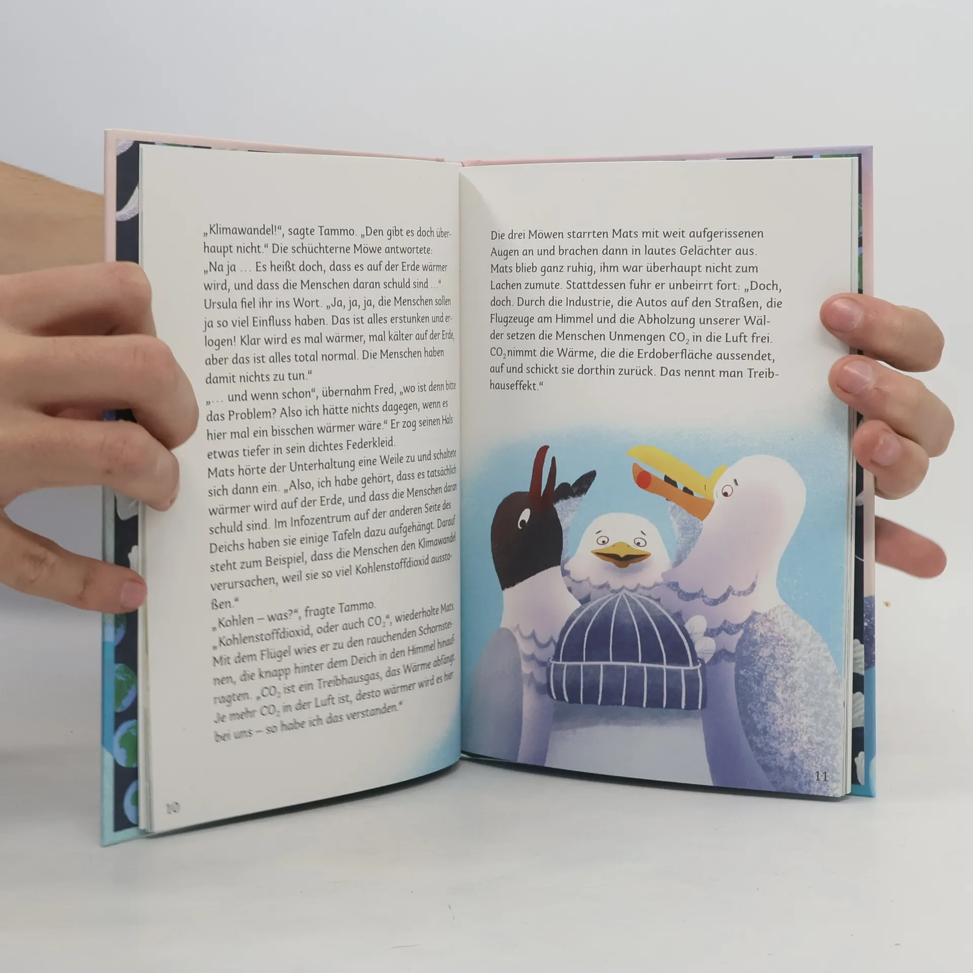 Klimawandel? Gibt’s doch gar nicht! Gibt es doch – das weiß auch Möwe Mats, dessen Zuhause ein ruhiges Fleckchen am Nordseestrand ist. Drei seiner Artgenossen glauben jedoch nicht an die Erderwärmung und ihre Folgen. Steigender Meeresspiegel? Extremes Wetter? Schmelzendes Eis? Alles Einbildung und schon gar nicht die Schuld der Menschen, glauben sie. Schließlich hat Mats genug von seinen ignoranten Mitmöwen und beschließt, ihnen das Gegenteil zu beweisen. Und so nimmt er sie mit auf eine spannende Reise um die Welt, die sie zum Nordpol, nach Hawaii und nach Bangladesch führt. Er zeigt ihnen, welche Auswirkungen der Klimawandel auf den Planeten und das Leben seiner Bewohner hat. Nach und nach kommen die drei Möwen ins Grübeln. Ist vielleicht doch etwas dran am Klimawandel …? Die liebevoll illustrierte Geschichte erklärt die Ursachen und Auswirkungen des Klimawandels und bietet jede Menge Tipps und Ideen, wie jedes Kind im Alltag der Umwelt helfen kann.