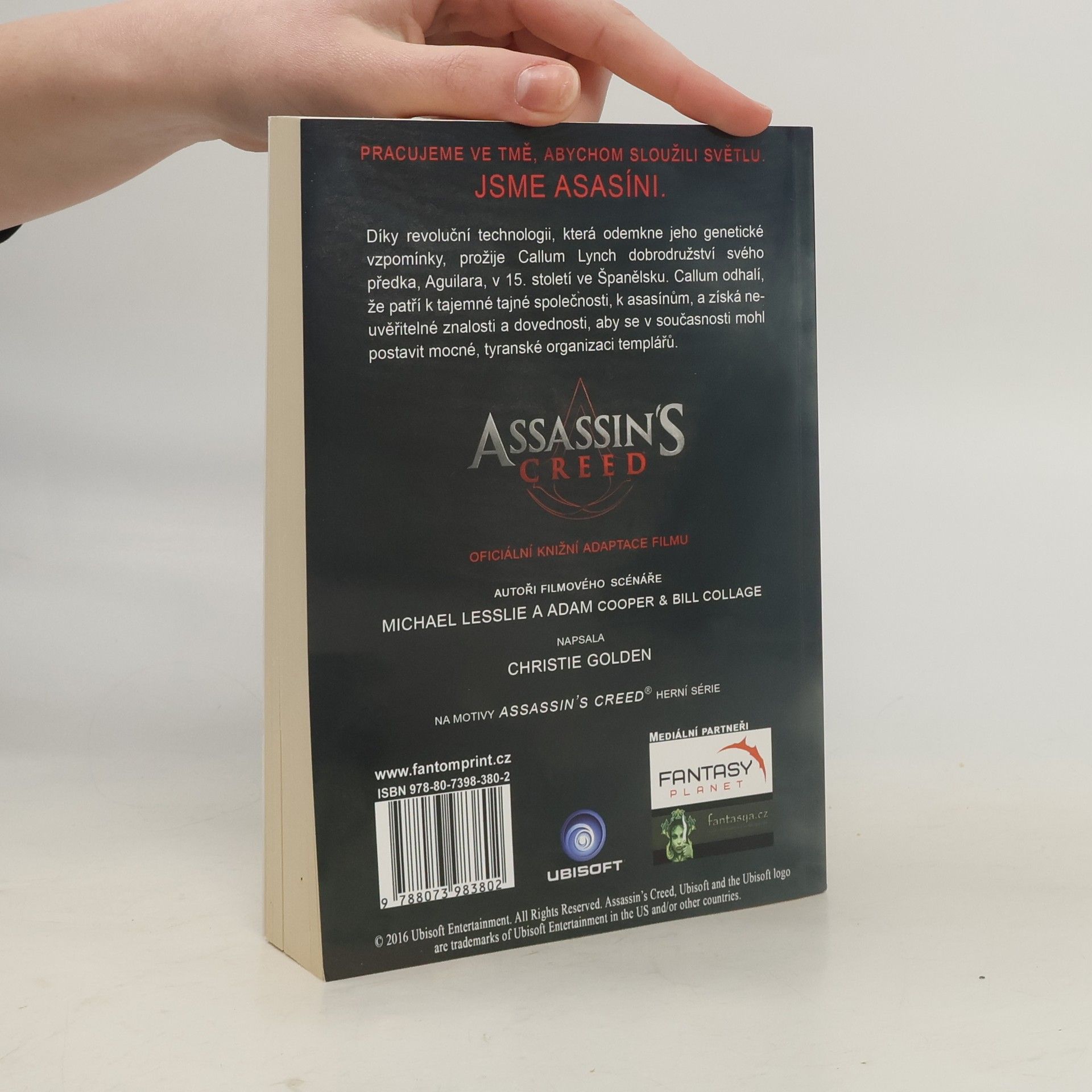 Oficiální knižní adaptace filmu. Díky revoluční technologii, která odemkne jeho genetické vzpomínky, prožije Callum Lynch dobrodružství svého předka, Aguilara, v 15. století ve Španělsku. Callum odhalí, že patří k tajemné tajné společnosti, k asasínům, a získá neuvěřitelné znalosti a dovednosti, aby se v současnosti mohl postavit mocné, tyranské organizaci templářů.