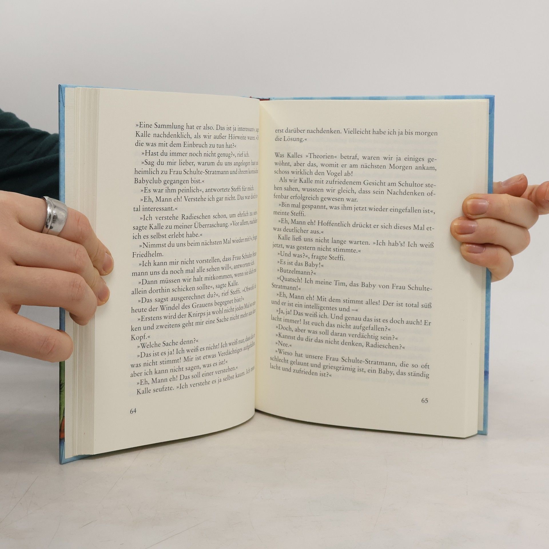 Ein rätselhafter Einbruch bei ihrer Lehrerin erregt die Detektivleidenschaft und die Fantasie der 4 Freunde. Um Recherchen anstellen zu können, betätigen sie sich heldenhaft als Babysitter und geraten dabei in unangenehme und peinliche Situationen. Ab 10.