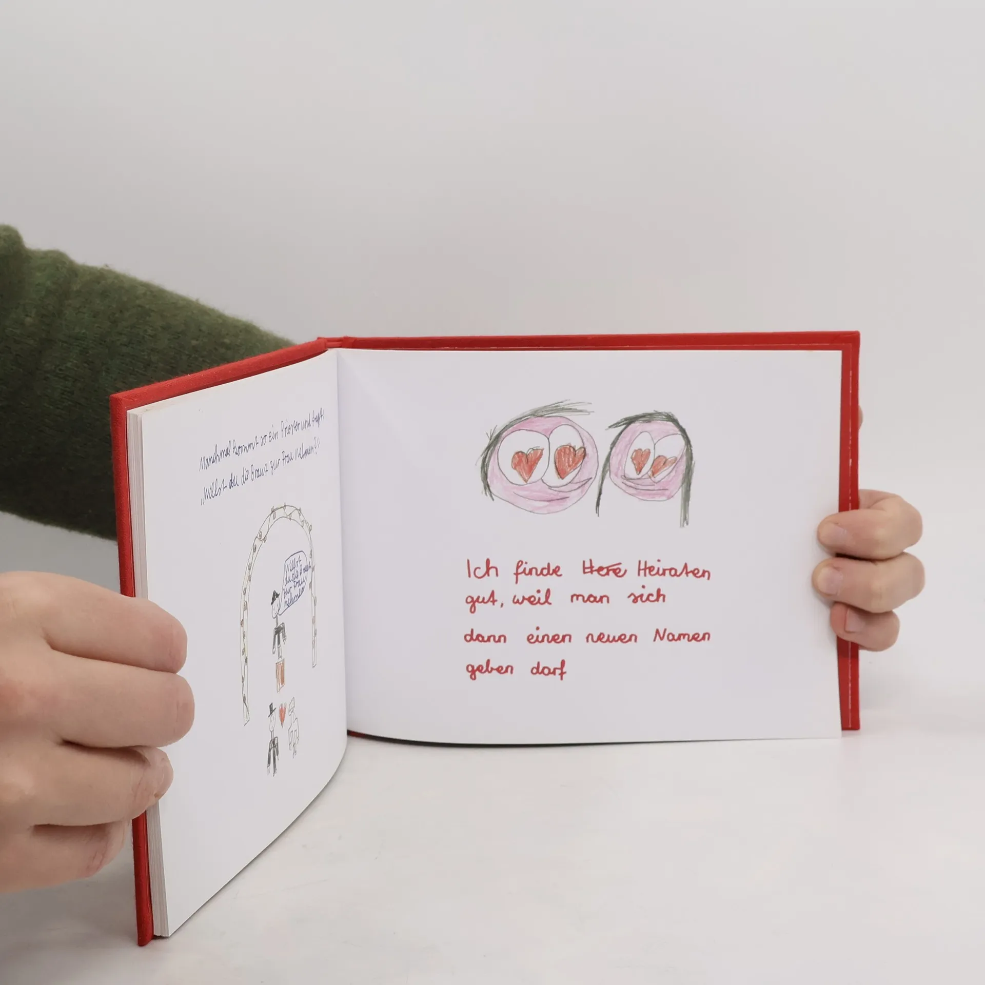 „Wer heiratet, darf den ganzen Tag knutschen... ...außer der Mann oder die Frau muss zur Arbeit.“ Erwachsene, so scheint es, sind sich der Konsequenzen einer Heirat oft gar nicht ausreichend bewusst. Die Autoren dieses Buches schon! In „Hochzeit machen ist sooo schön“ erzählen und malen 24 Schulkinder ihre Gedanken zum Thema Heiraten und Ehe. Originell, pfiffig und unglaublich witzig ist dieses hochwertig ausgestattete Büchlein ein außergewöhnliches Hochzeitsgeschenk für Eheleute, die es wirklich wissen wollen. Auch über die Tücken der Ehe wissen die Kinder Bescheid: „Dann müssen der Mann und die Frau in einem Haus wohnen und den ganzen Tag aufräumen.“ „Das einzig doofe ist das Kleid, weil man da drüber stolpern kann.“ Ja, es gibt wirklich viel zu bedenken. Größere Schwierigkeiten lassen sich jedoch von vornherein vermeiden, wenn man eine grundlegende Regel beachtet: „Wenn man sich heiratet, sollte man sich vorher zumindest schon gesehen haben.“ Unter der Anleitung des Grundschullehrers Jan Kuhl – der hauptberufliche Pädagoge hat bereits zahlreiche Geschenkbücher bei arsEdition veröffentlicht – ist ein schelmisch-heiteres Buch über den schönsten Tag im Leben entstanden. Die Kombination aus naiven Wahrheiten und bezaubernden Kinderzeichnungen geht ans Herz!