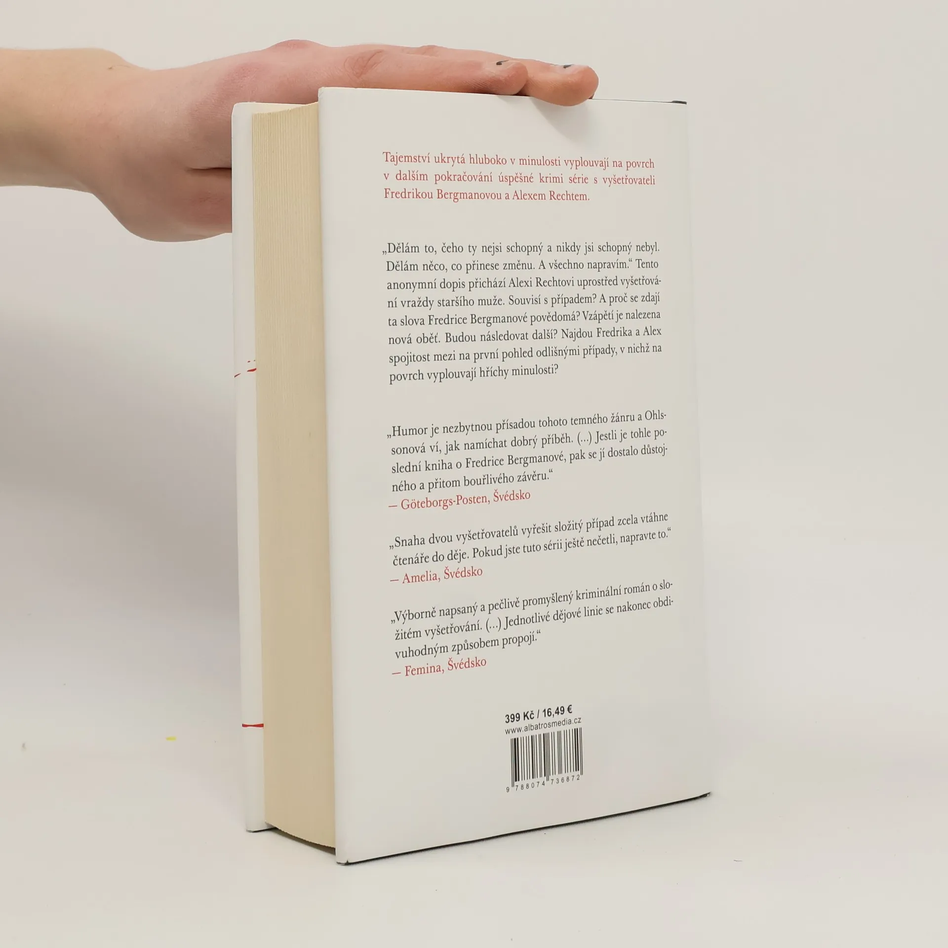 V křesle před krbem ve vlastním domě je nalezen postarší muž. V prsou mu zeje díra po kulce, na malíčku má z neznámého důvodu navlečený snubní prsten své dcery. V jiné části města se majitel pohřebního ústavu pokouší najít svého bratra, který nikomu jinému kromě něj očividně nechybí a který namísto plánovaného přesídlení do Austrálie možná zmizel navždy. Ve stejnou dobu se zoufalá žena usilovně snaží neztratit kontrolu nad vlastním životem, zatímco se z jejího muže stává čím dál nebezpečnější člověk. Času už moc nezbývá a ochránit sebe a své děti pro ni začíná být nadlidský úkol. Když Fredrika Bergmanová a Alex Recht mezi těmito na první pohled odlišnými případy odhalí spojitost, ocitají se v kruhu stop úzce souvisejících s hříchy z minulosti. Alexovi chodí anonymní dopisy od člověka, který by rád ve všem zjednal pořádek. Kdo za dopisy stojí a proč je pachatel očividně vždy o krok napřed? Potopa, šestá kniha z krimi série o Fredrice Bergmanové a Alexi Rechtovi, přináší napínavý příběh, v němž to, co bylo dosud skryto, znovu vyplouvá na povrch.
