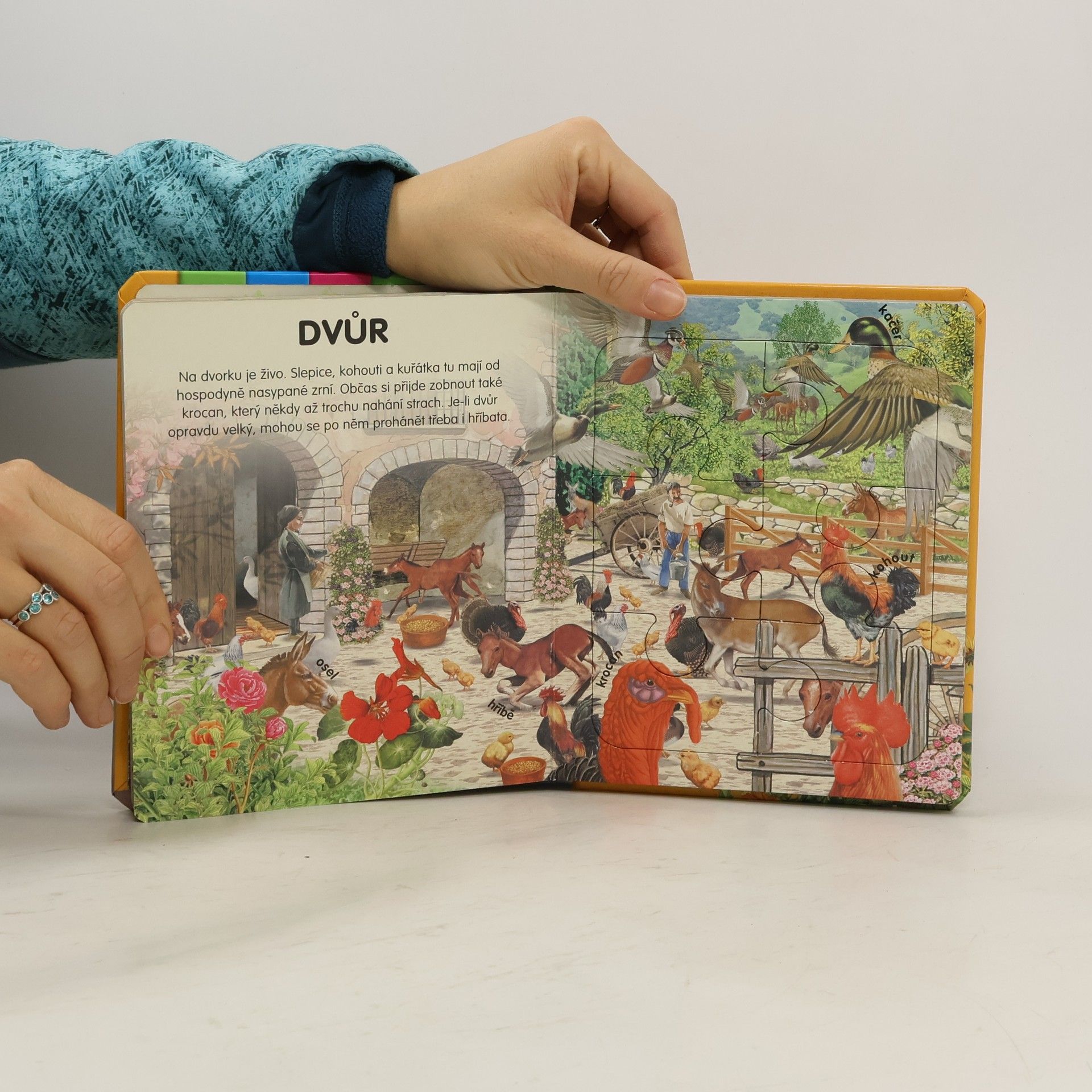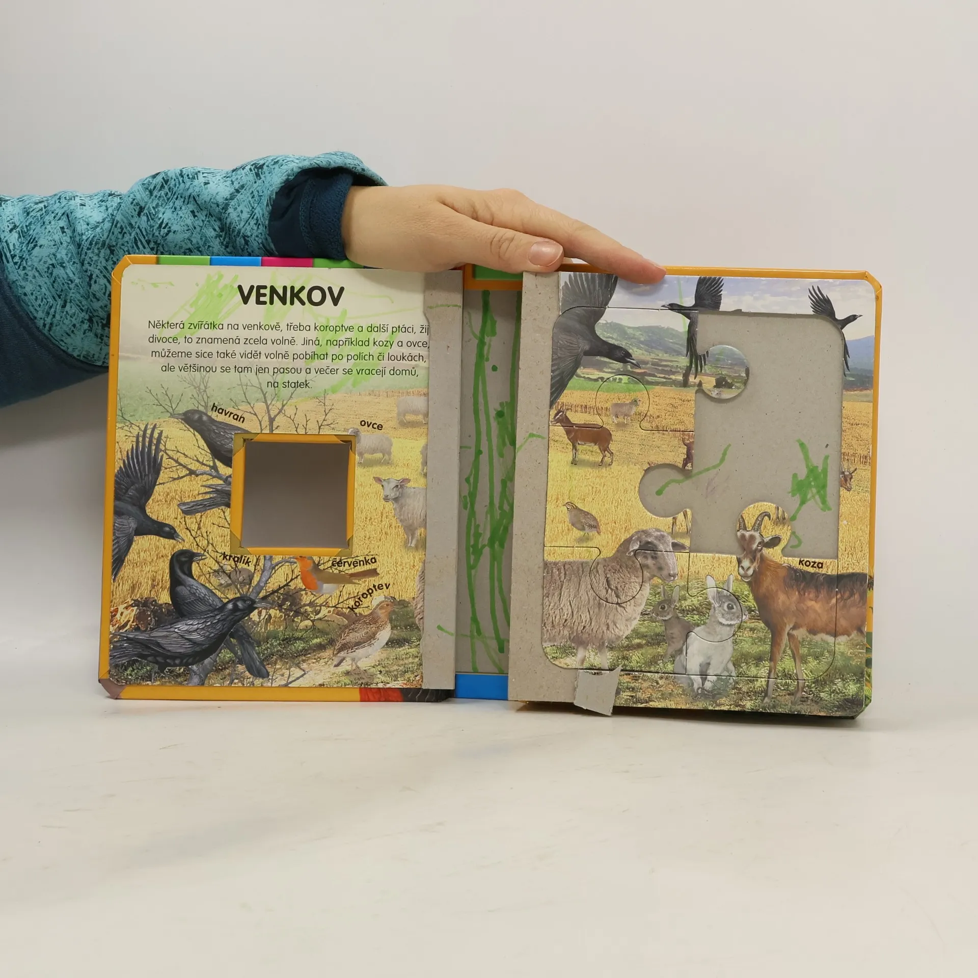 Přitažlivé barevné ilustrace spolu se skládačkami puzzle přiblíží dětem zvířata žijící na venkově. Seznámí se tak s druhy běžnými ve volné přírodě, ale také se zvířaty hospodářskými. Kniha obsahuje 6 šestidílných skládaček puzzle.