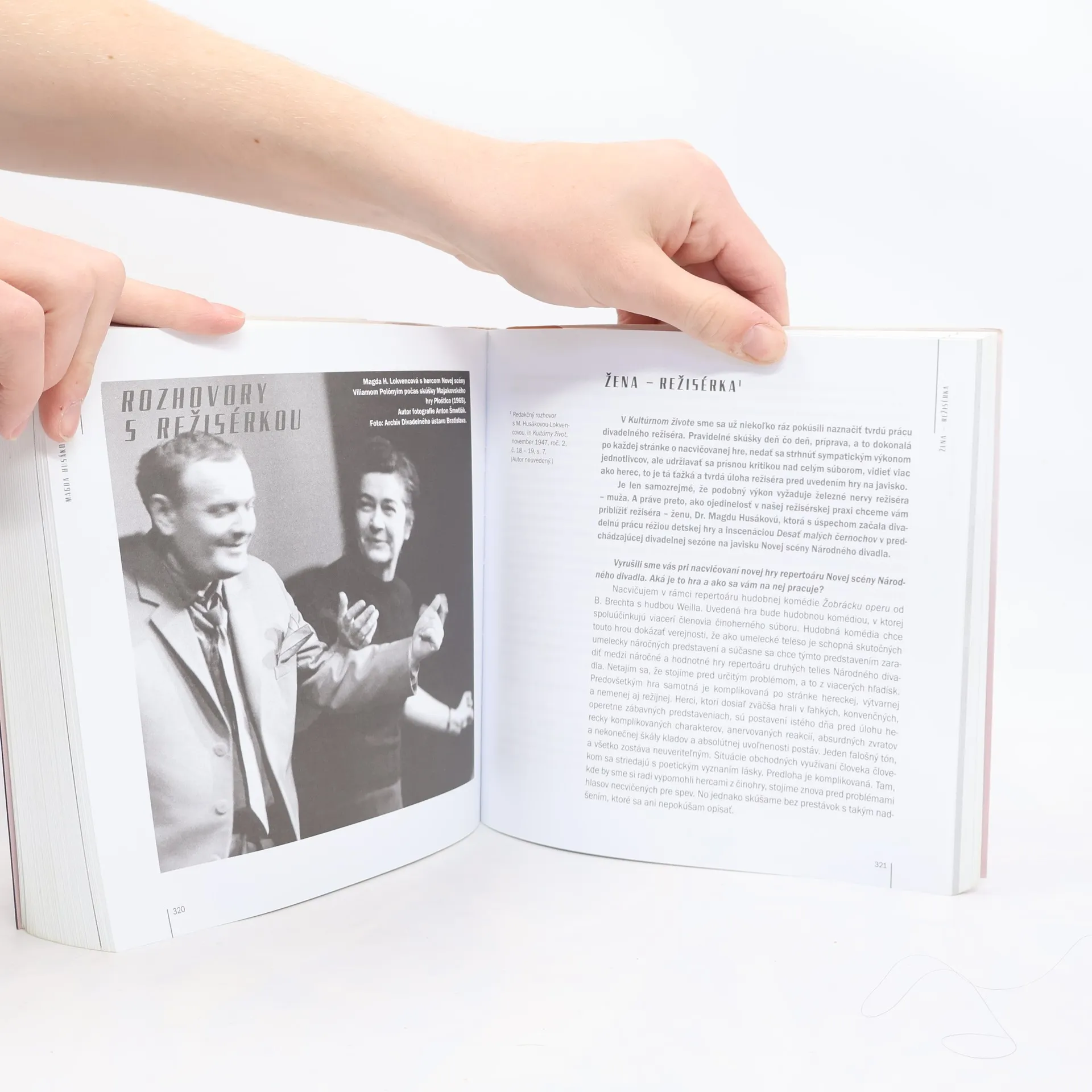 Kolektívna knižná monografia je prvou a jedinou publikáciou venovanou osobnosti a dielu JUDr. Magdy Husákovej-Lokvencovej (1916 – 1966). Publikácia vznikla na základe archívneho prvovýskumu, reflektuje a mapuje bohatú tvorbu prvej slovenskej profesionálnej divadelnej režisérky, ktorá v divadle, rozhlase a televízii vytvorila viac ako päťdesiat inscenácií. Monografia dokumentuje podiel Magdy Husákovej-Lokvencovej na formovaní modernej slovenskej divadelnej réžie a herectva. Kniha obsahuje štúdie odborníkov z oblasti dramatických umení, dokumenty z pera Magdy Husákovej-Lokvencovej, rozhovory s režisérkou a o režisérke, spomienky pamätníkov a bohatý obrazový materiál. Publikované štúdie, viaceré dobové materiály, informácie, fotografie a fakty sú zverejnené po prvý raz.