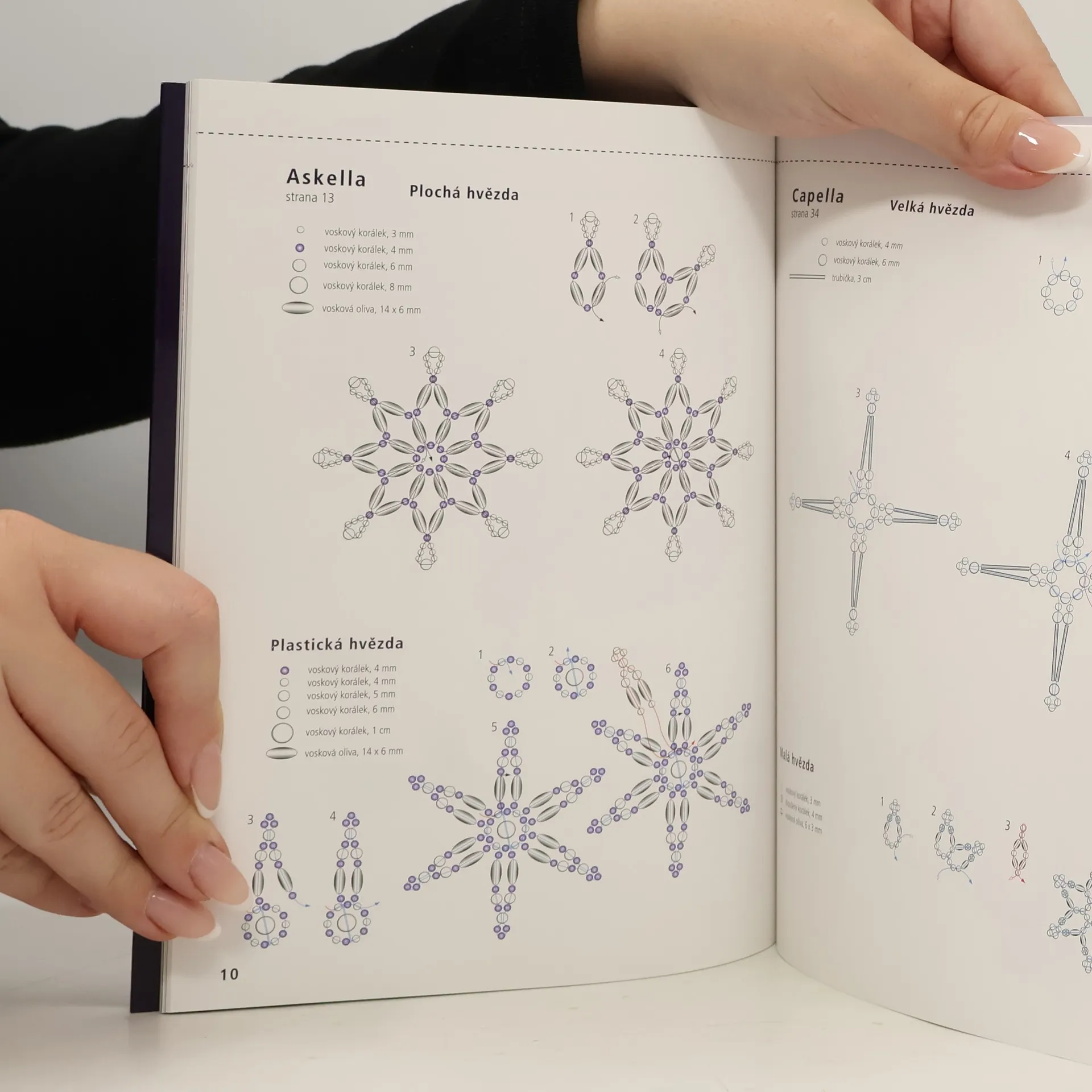 Působivé hvězdy navlékané na drátek nebo nasunované na magickou perlu se stanou vánočními dekoracemi, které vám nikdy nezevšední. Zhotovení všech hvězd je vysvětleno podrobně krok za krokem pomocí obrázků, detailních barevných schémat a přesných návodů.