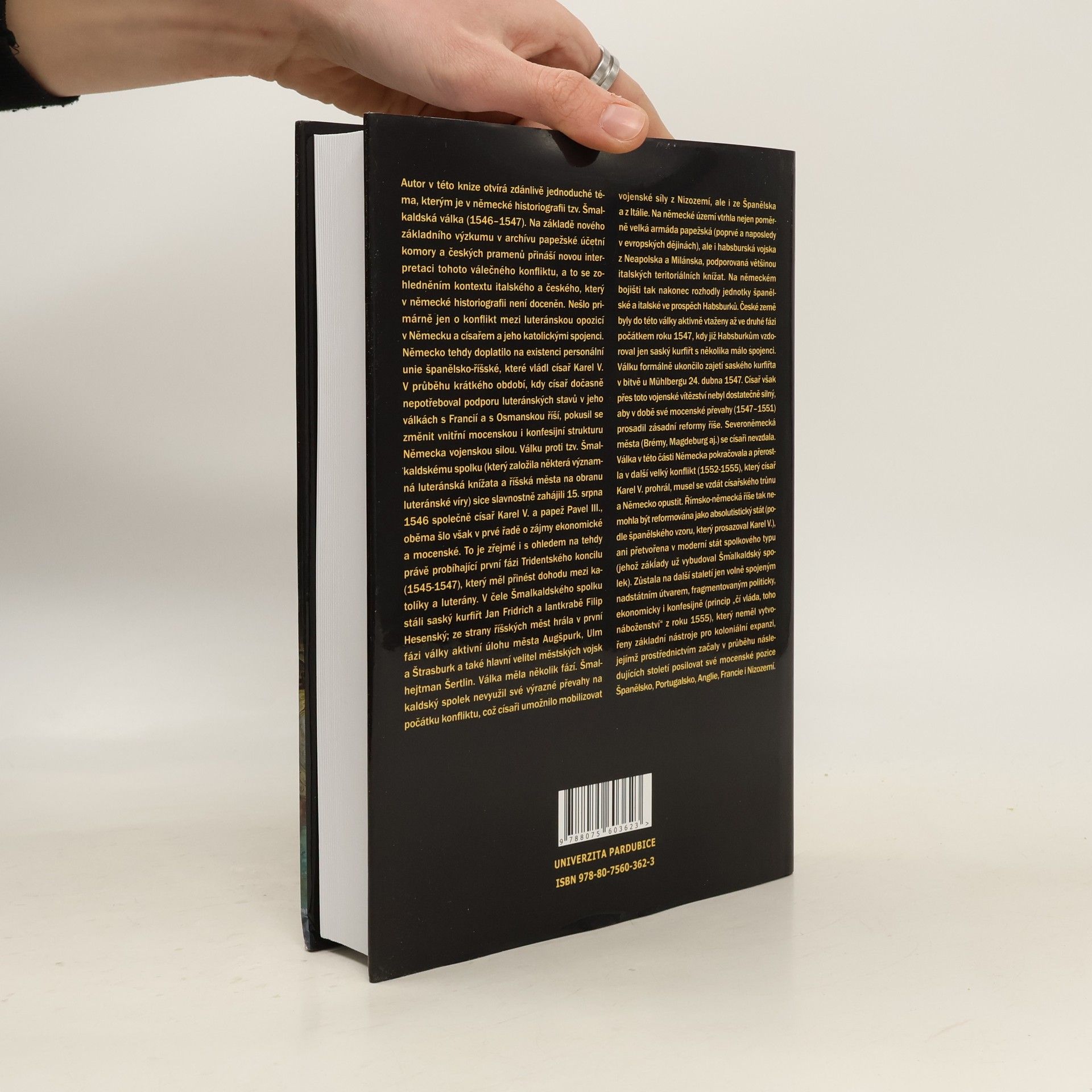 Kniha představuje nový příspěvek české historiografie k evropským dějinám 16. století, zaměřující se na Šmalkaldskou válku (1546-1547). Autor na základě nového výzkumu přináší vlastní interpretaci, která zohledňuje italský a český kontext, jež je v německé historiografii opomíjen. Německo v té době čelilo důsledkům personální unie španělsko-říšské pod vládou Karla V. Španělské impérium, dominantní evropská mocnost, se snažilo zničit luteránskou opozici organizovanou v Šmalkaldském spolku. Na německé území vtrhla španělsko-habsburská vojska z Neapolska a Milánska, podpořená italskými knížaty. Papež Pavel III. poprvé vyslal do Německa velkou armádu papežskou, aby se postavila luteránským heretikům. V bitvě u Mühlberka 24. dubna 1547 rozhodly španělské, italské a nizozemské jednotky ve prospěch Habsburků. V severním Německu však válka pokračovala a přerostla v další konflikt, který Karel V. prohrál, což vedlo k jeho abdikaci a opuštění Německa (1555). Římsko-německá říše tak zůstala politicky, ekonomicky a konfesijně rozdrobená, bez nástrojů pro koloniální expanzi, zatímco Španělsko, Portugalsko, Anglie, Francie a Nizozemí posilovaly své mocenské pozice.