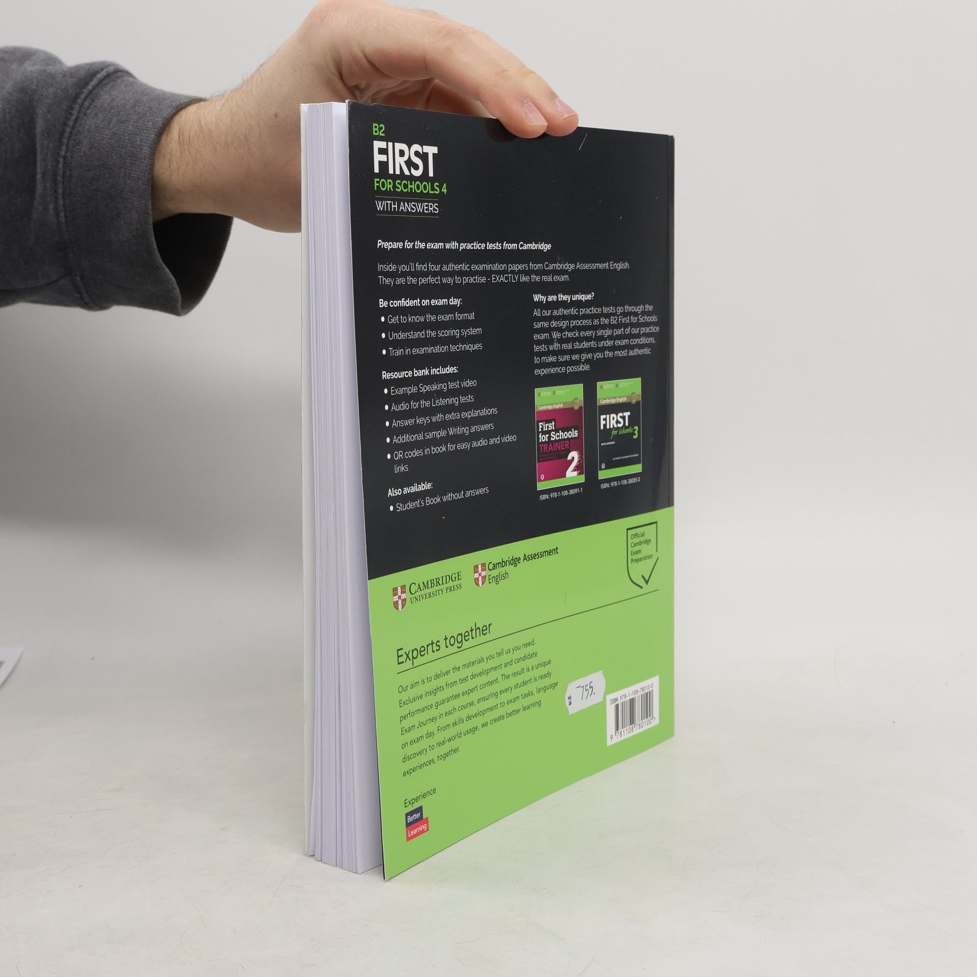 Authentic examination papers from Cambridge Assessment English provide perfect practice because they are EXACTLY like the real exam. Inside B2 First for Schools 4 you'll find four complete examination papers from Cambridge Assessment English. Be confident on exam day by working through each part of the exam and scoring system so you can familiarise yourself with the format and practise your exam technique. The book contains transcripts, sample Writing answers, scripts for the Speaking test, and sample answer sheets. Download the audio for the Listening tests, example Speaking test video and answer keys with extra explanations (instructions on inner front cover), or access your audio and video directly via QR codes in the book.