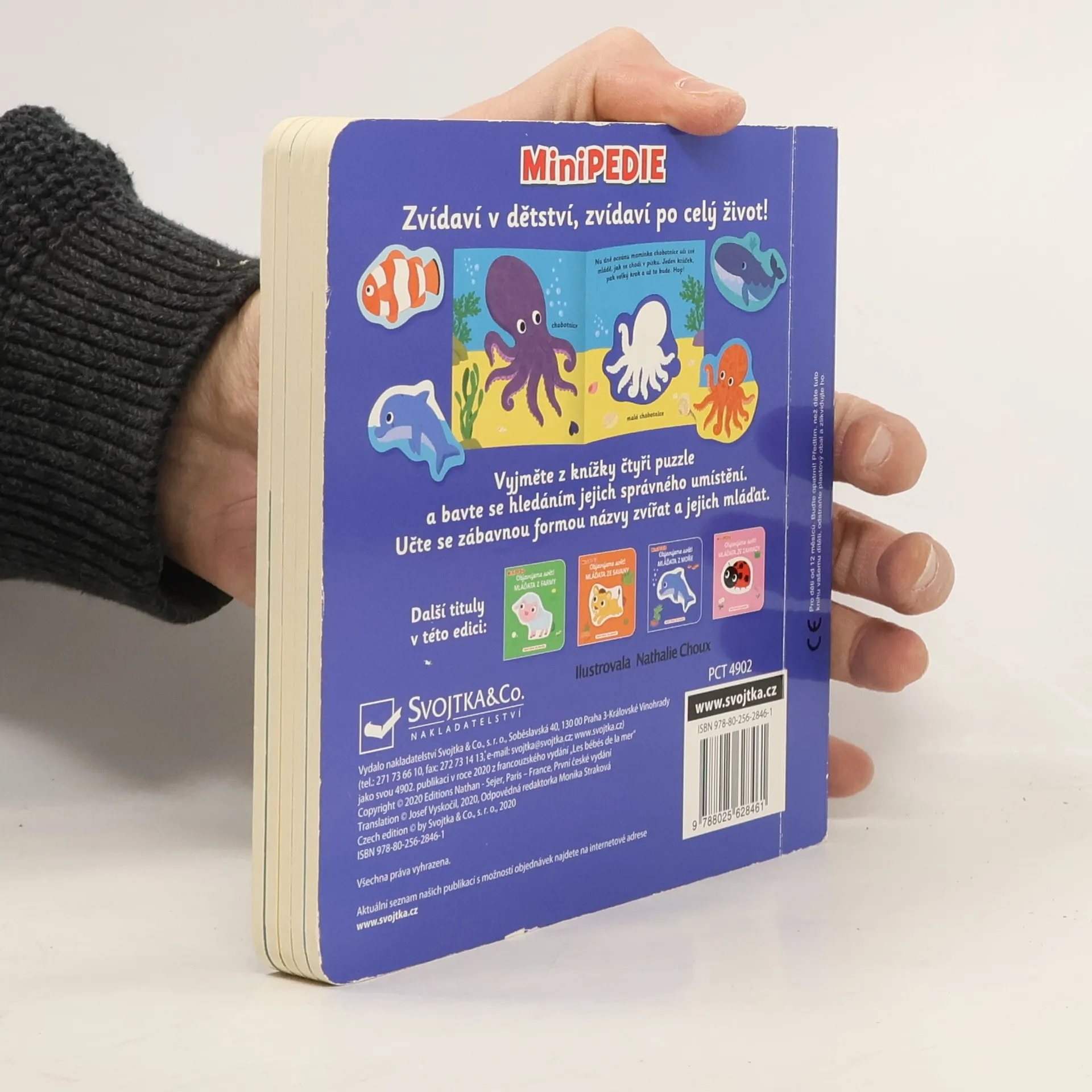 Malá chobotnice se učí chodit po mořském dně a delfín skáče nad hladinu. A kdo dělá v oceánu malé bublinky? Slož a zase rozlož! Uč se se zvířátky. Tato knížka obsahuje velké kusy puzzle a je zaměřená na mláďátka z moře. Roztomilé ilustrace a krátké popisky jsou ideální jak na hraní, tak i objevování a dozvídání se nových informací o obyvatelích žijících pod hladinou moře. Velké a především pevné kusy puzzle jsou vhodné pro malé dětské ruce a zaručí, že přežijí nejedno poutavé hraní. Toto leporelo je vhodné pro nejmenší čtenáře, protože procvičí jak jemnou motoriku, tak napomůže s rozvojem schopností skládat a přiřazovat správné objekty dohromady.